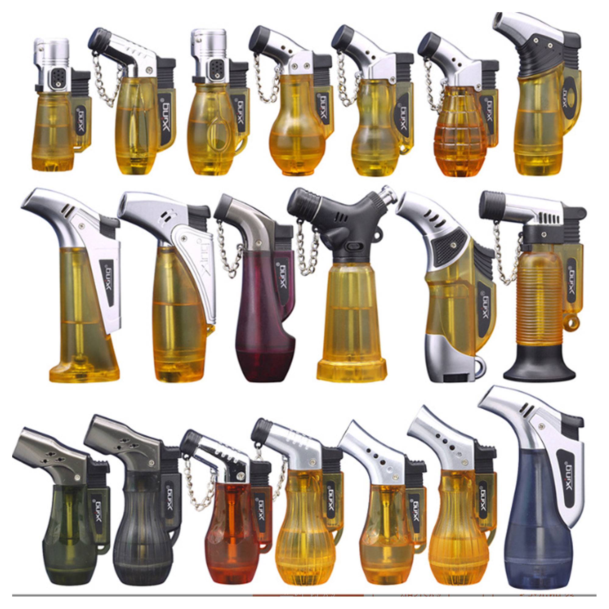 High-power transparent cigar lighter with adjustable flame and ergonomic bent nozzle.