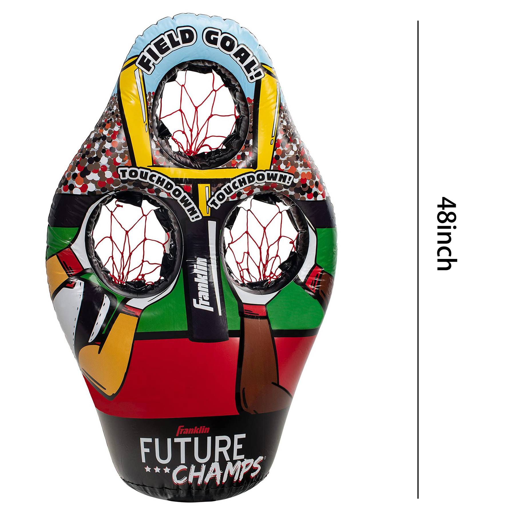 The inflatable 3-hole football target stores and travels easily, making it perfect to take on the go!