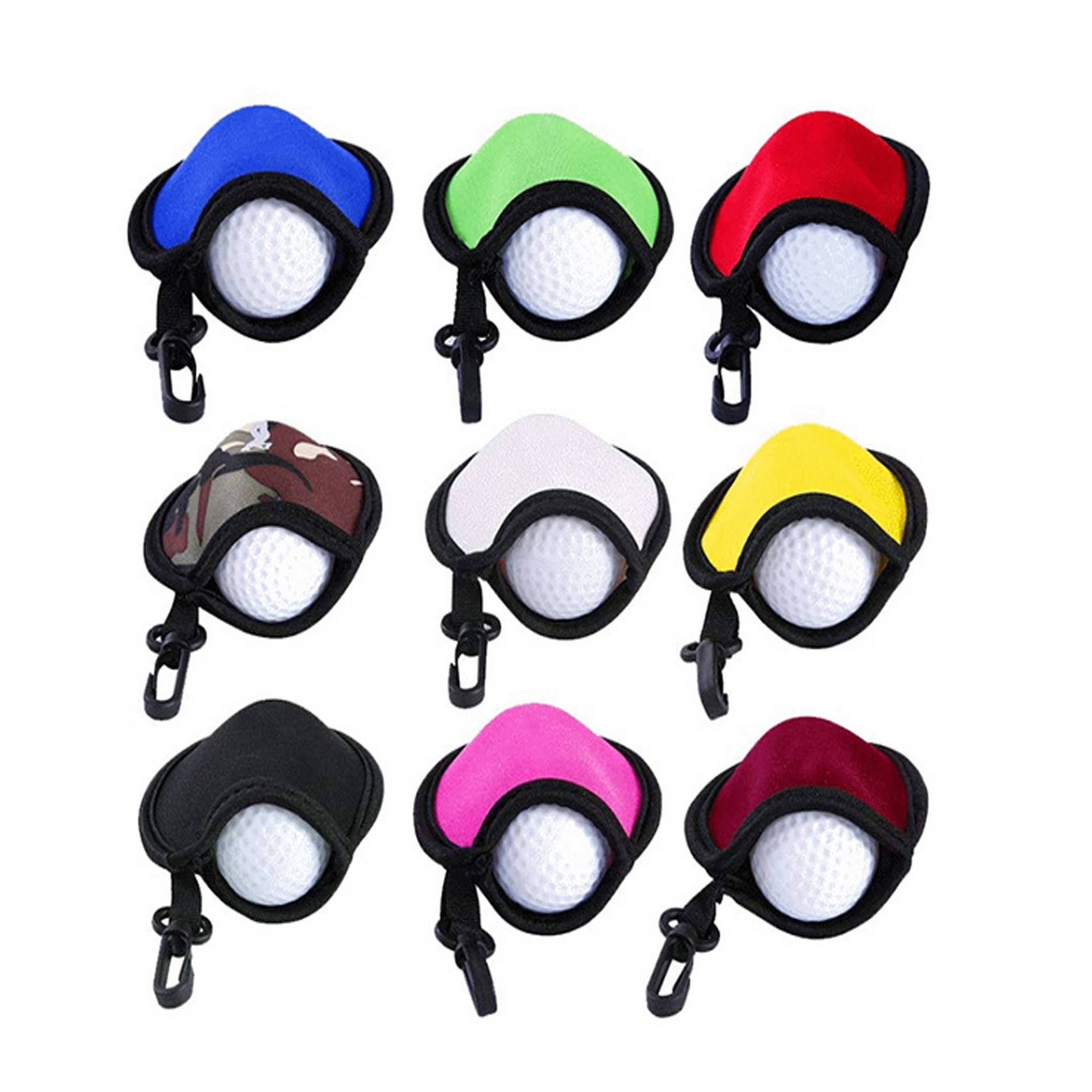Golf pouch is made of durable 600D polyester material, features zippered pouch and metal lobster claw clip