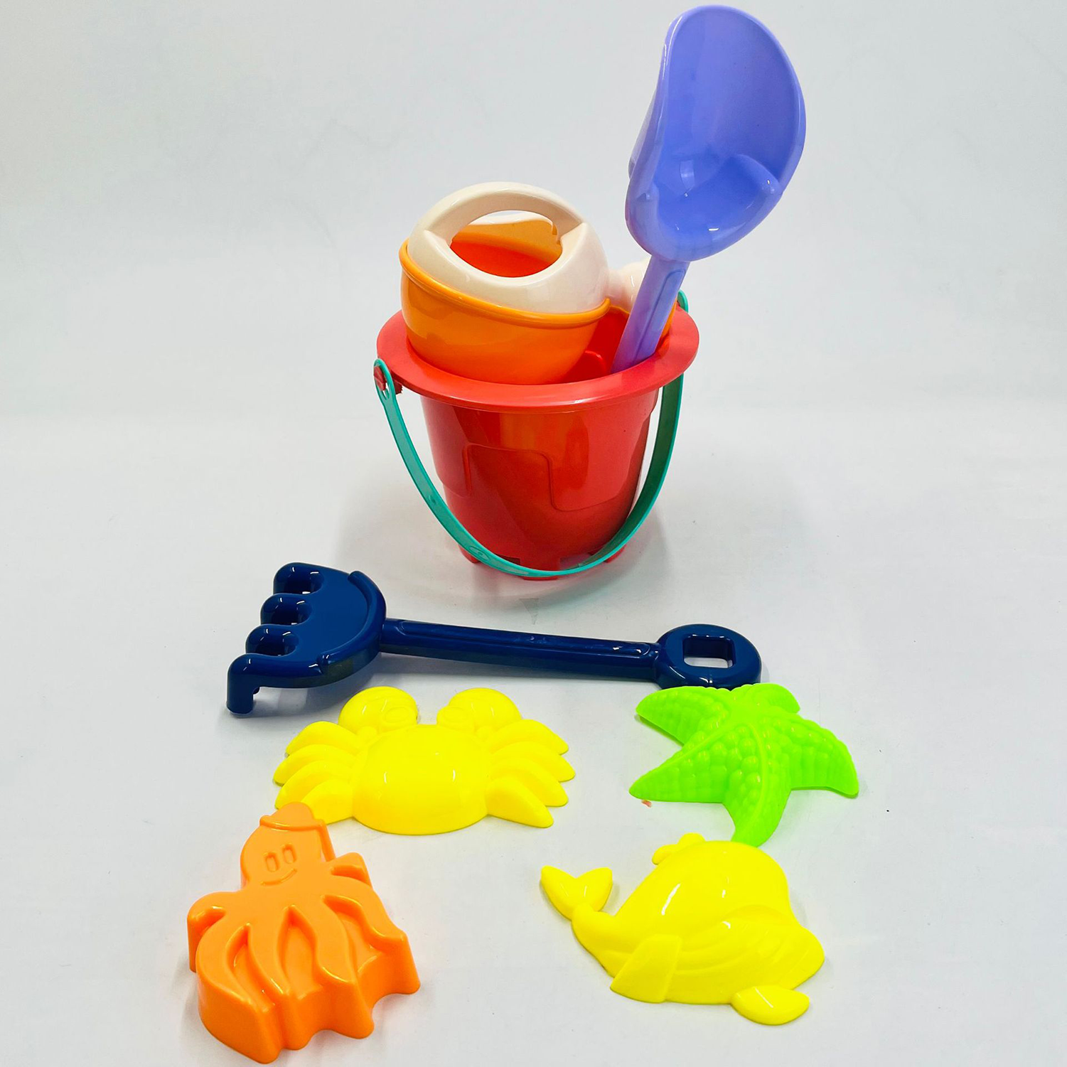 This beach sand pail set is ideal for beach days, sandboxes, and backyard play for kids.