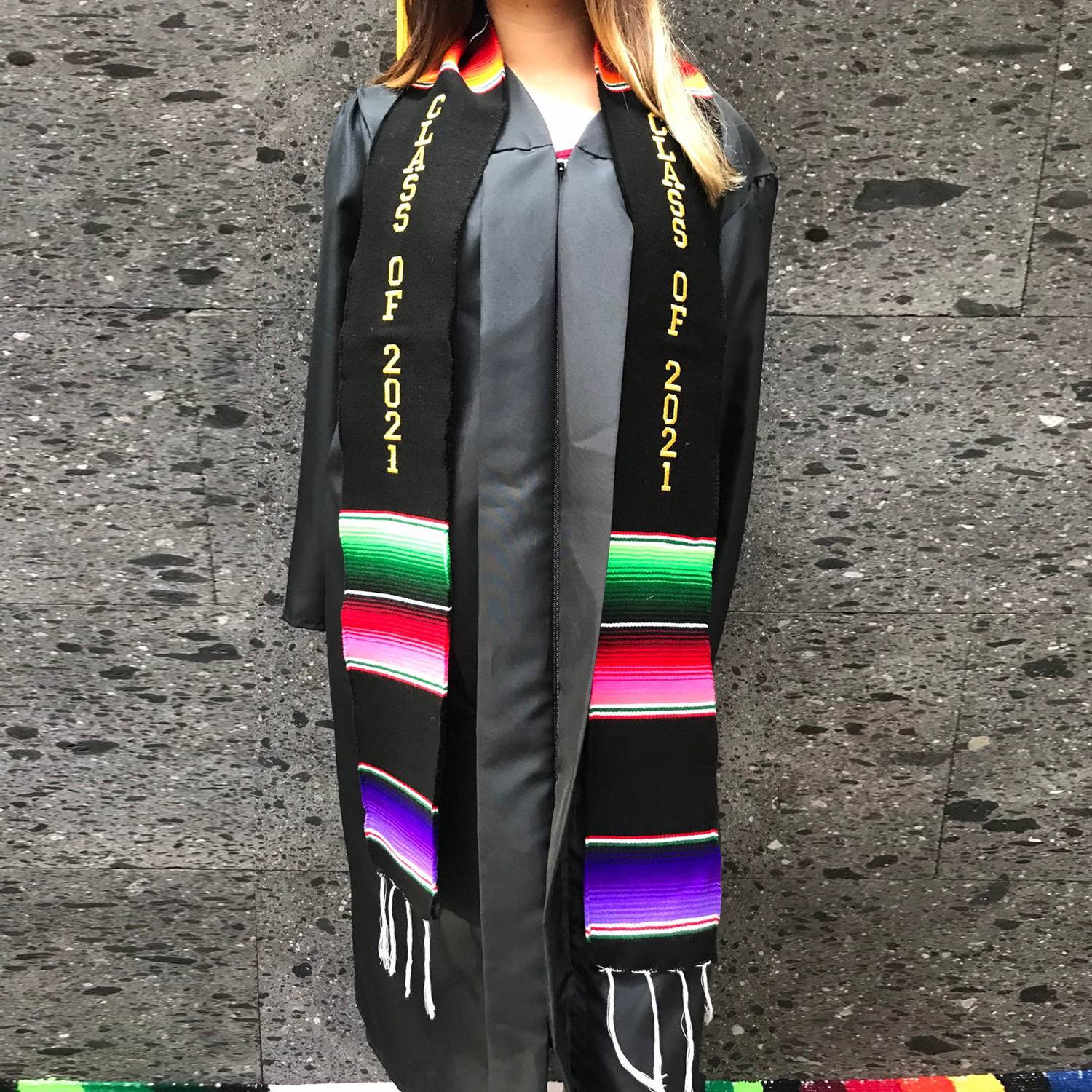 Colorful polyester grad sash . Lightweight , hypoallergenic, pocket. Perfect for ceremonies. Machine-washable.