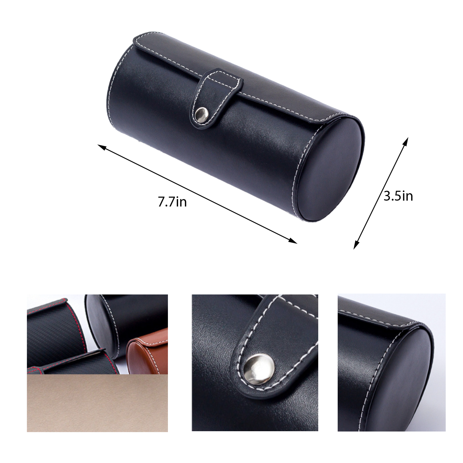 Premium PU leather watch box with soft pillows, holds 3 watches, safe for travel.