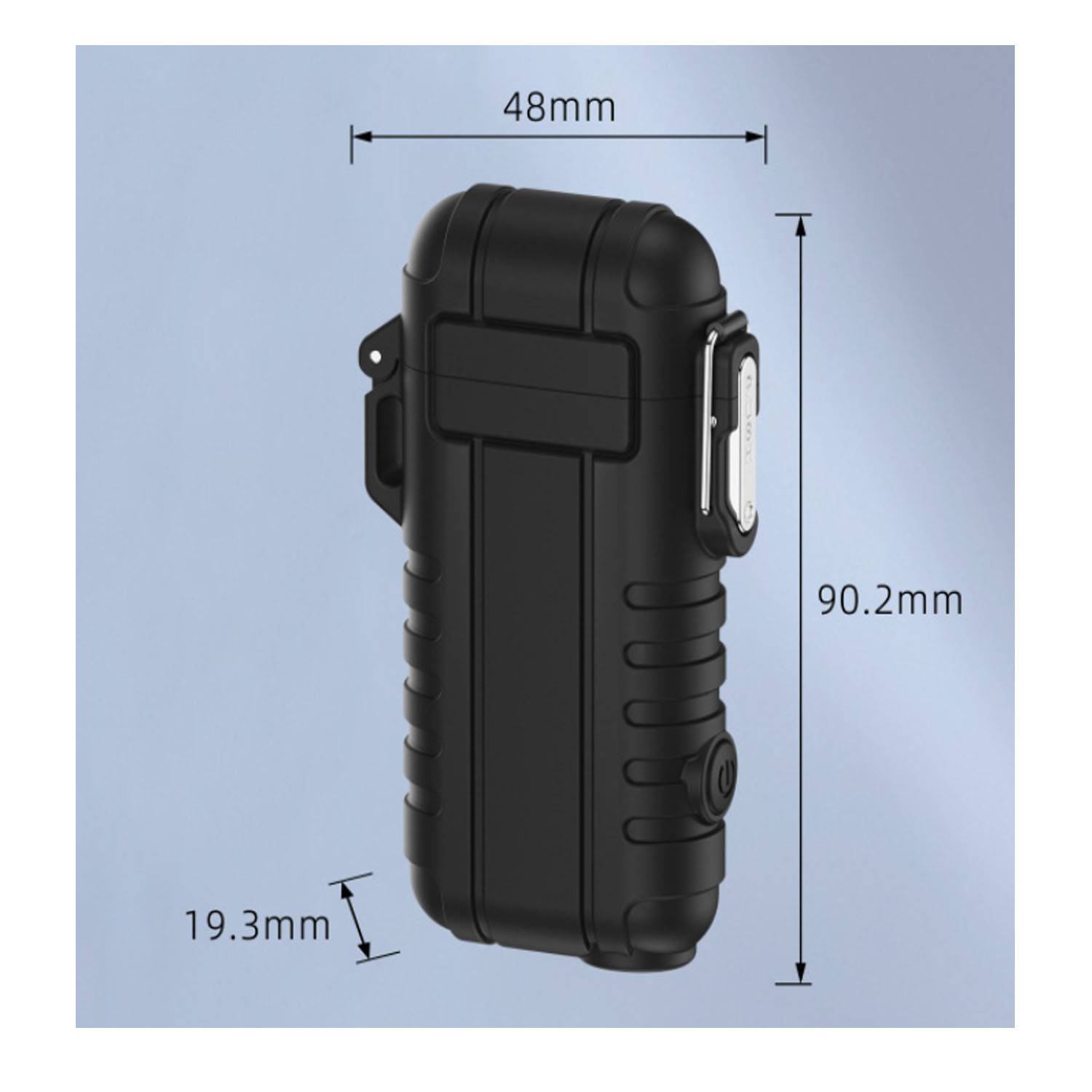 Waterproof torch lighter with safety lanyard, dimensions 1.9×0.8×3.5 inches, ideal for outdoor use and emergencies.