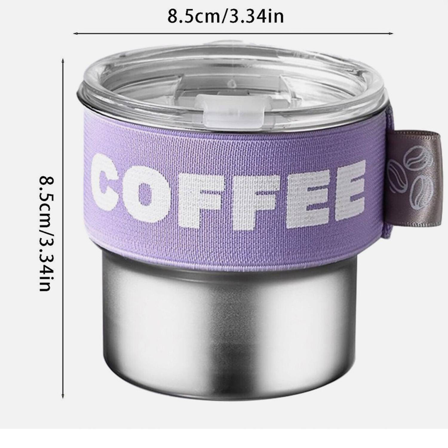 Stainless steel coffee cup with 6-hour heat retention, leak-proof lid, comfortable grip, and versatile use.