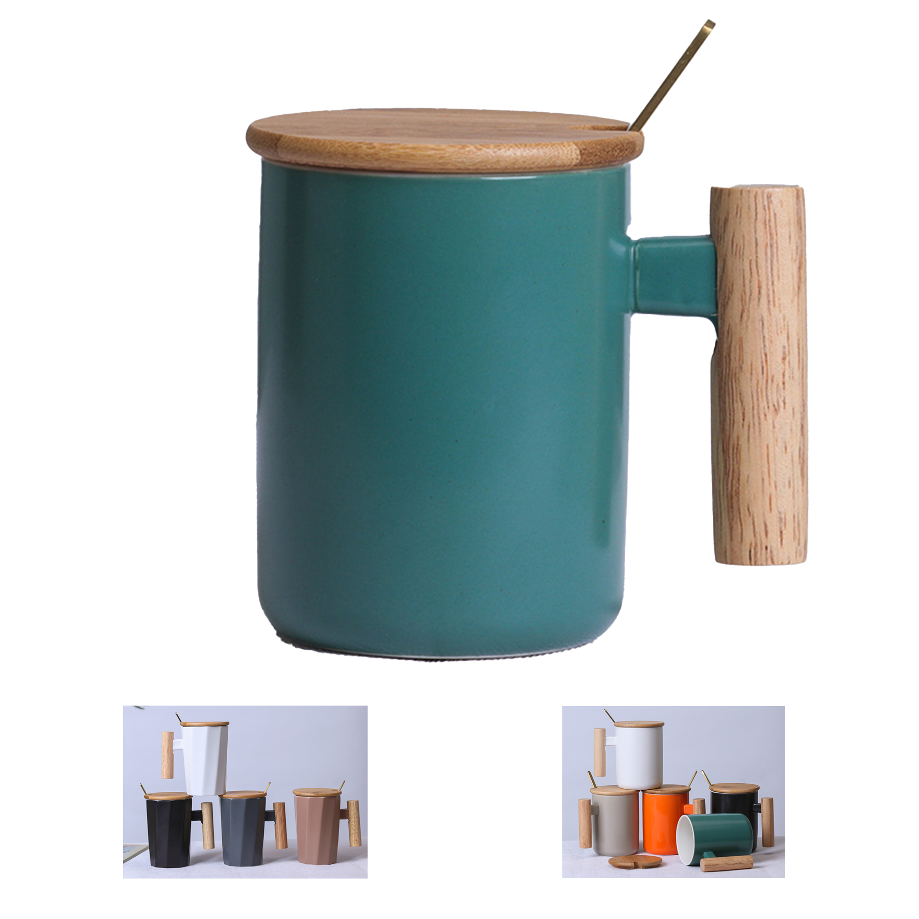 Our mug has a large capacity(12 Oz) with wood lid and golden coffee spoon, which will meet your needs for office and home.