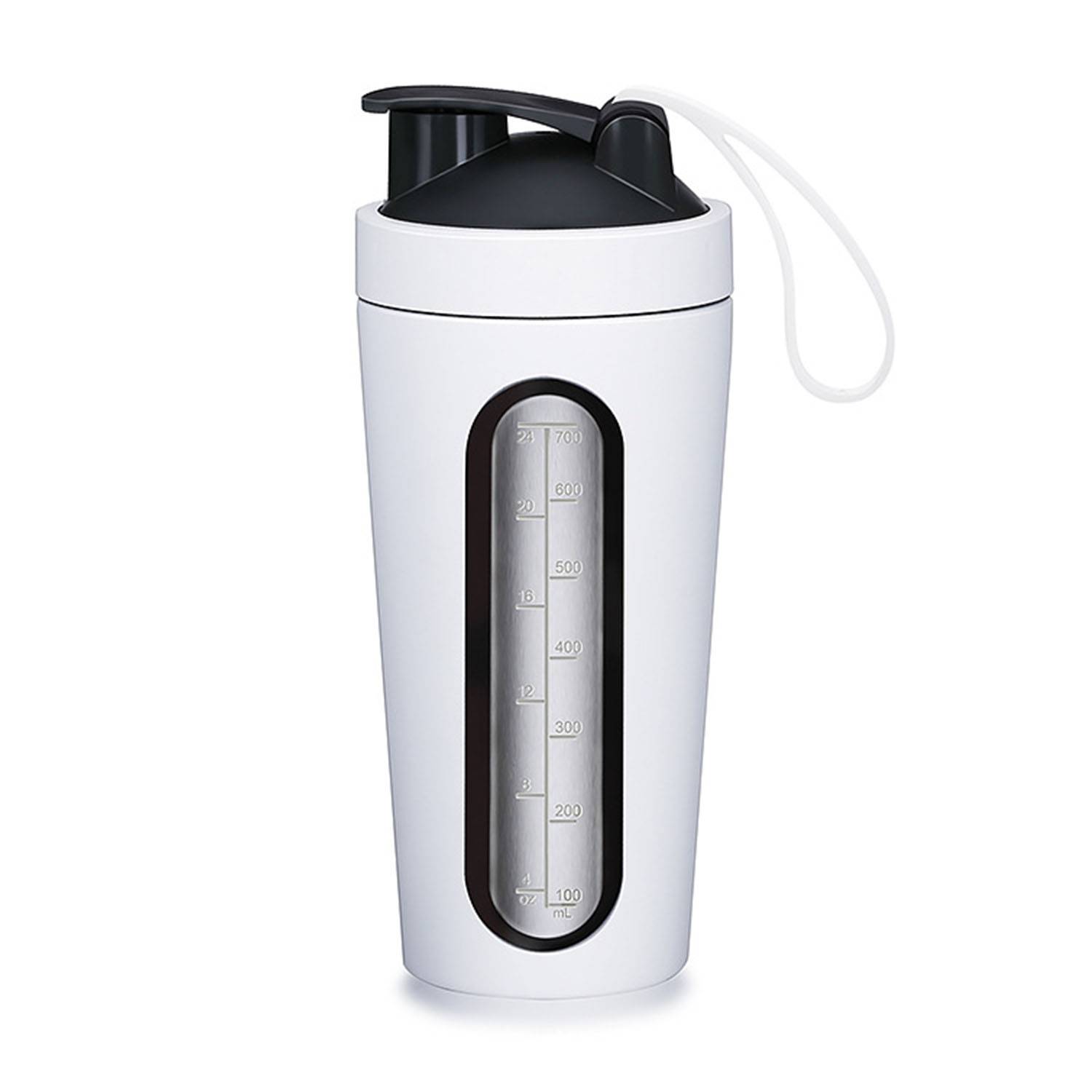 24 oz Stainless Steel Shaker Bottle, food-grade, blends drinks, leak-proof, ergonomic, for gym and commute.