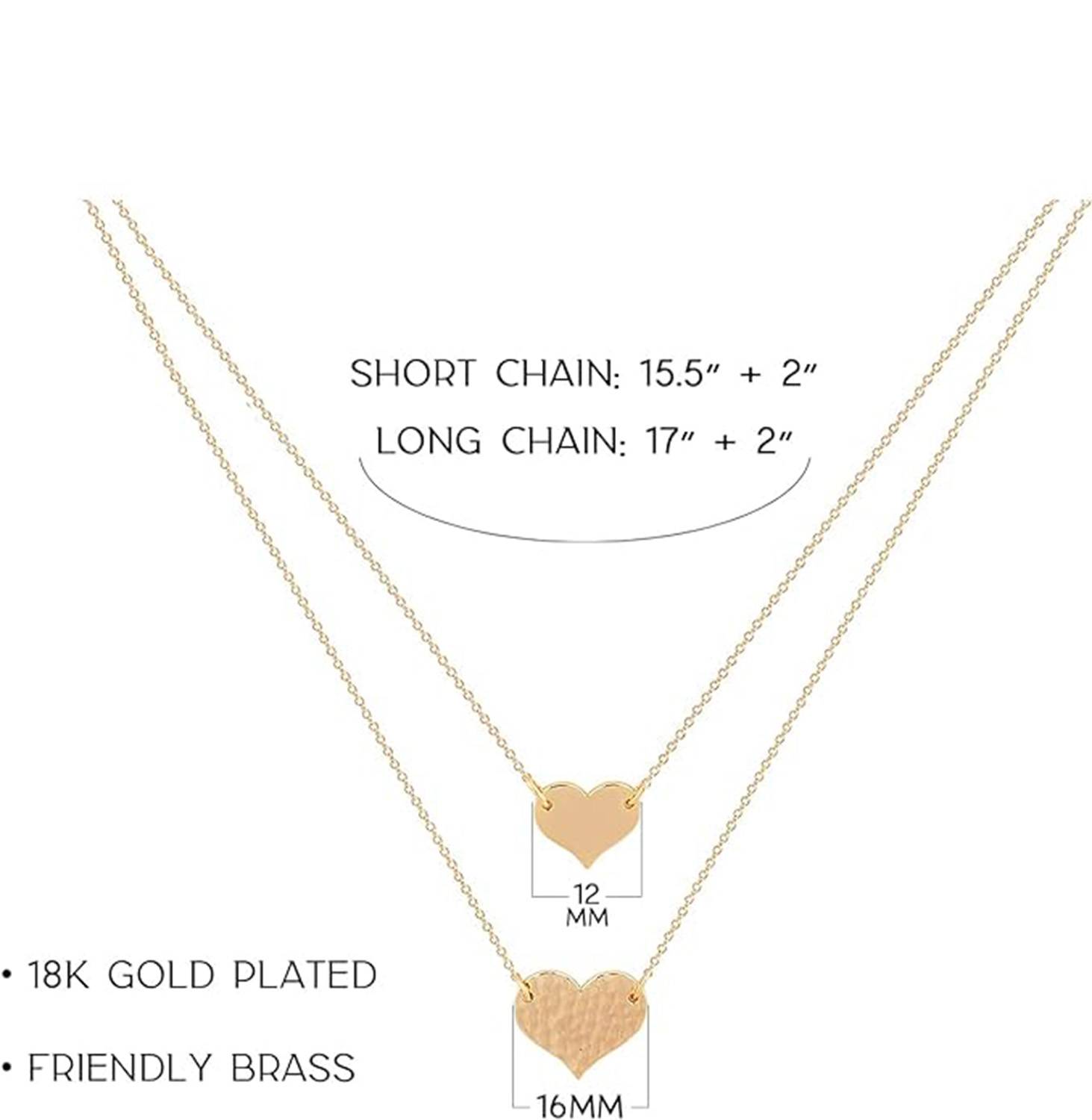 Double 18K gold-plated heart necklaces, meticulously crafted with polished copper chains for lasting quality.