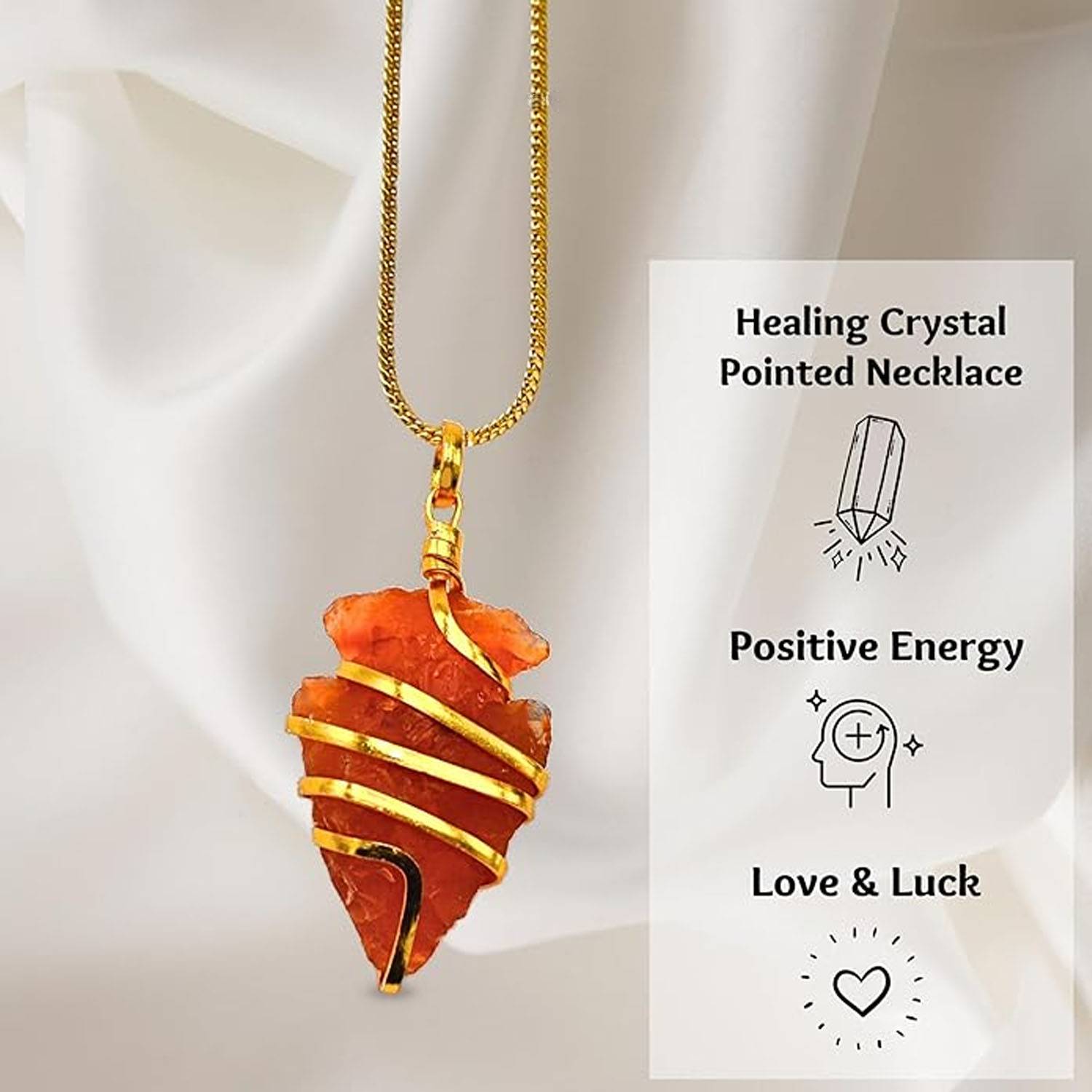 This handcrafted Carnelian crystal pendant necklace features an adjustable, comfortable fit.