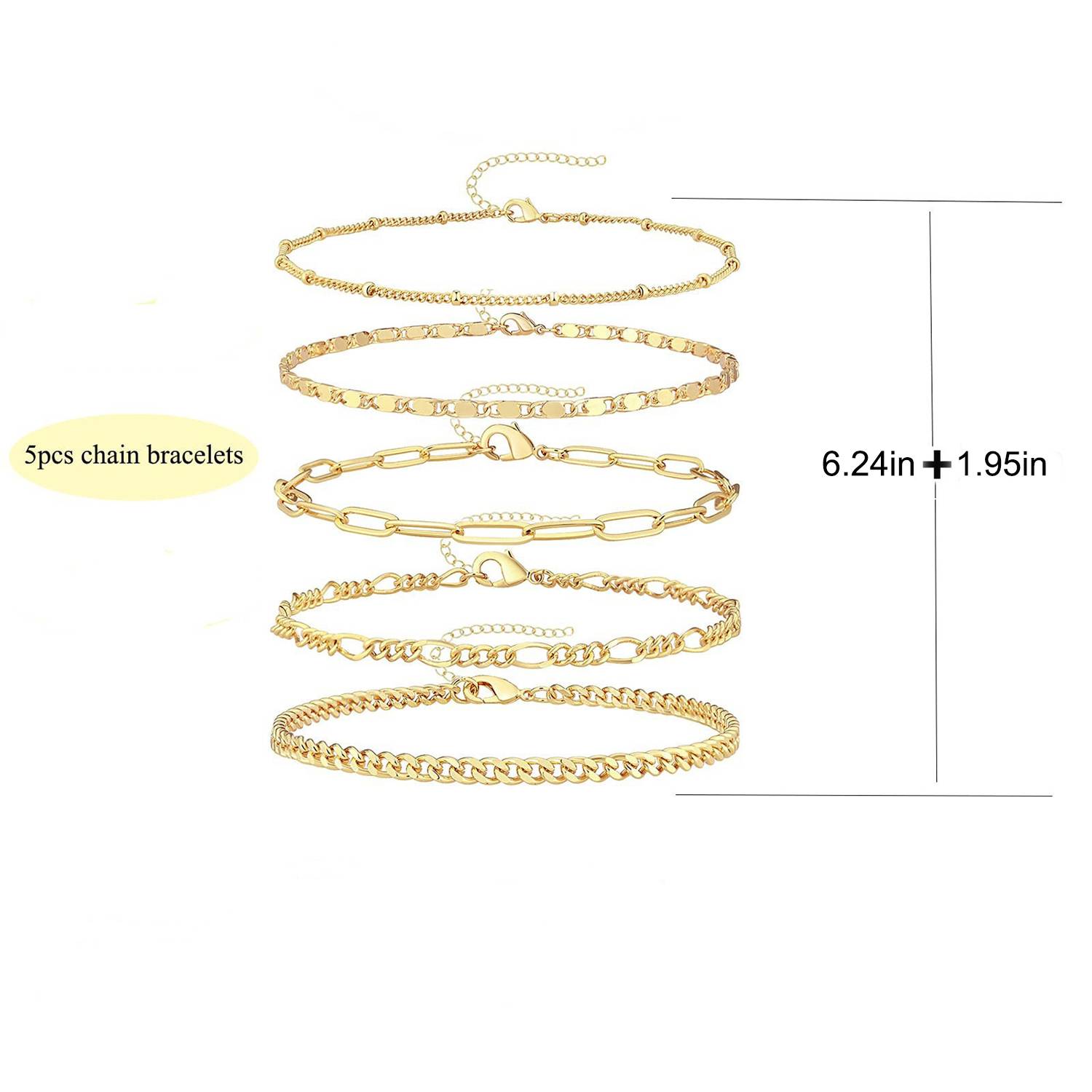 14K Real Gold Plated Link Chain Bracelets Set for Women