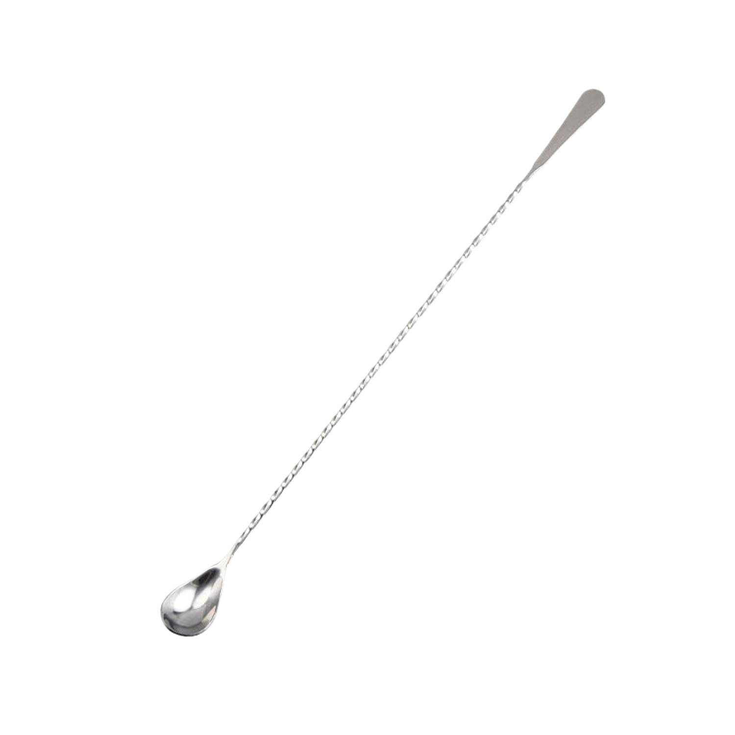 Durable stainless steel cocktail spoon with twisted handle, perfect for mixing drinks at bars or home.