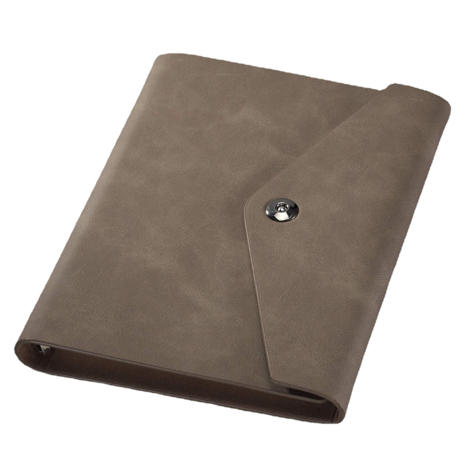 A5 leather notebook eco-pages, smooth writing. Magnetic clasp, card slots, 6-ring design. Safe, ideal for work/travel practical.