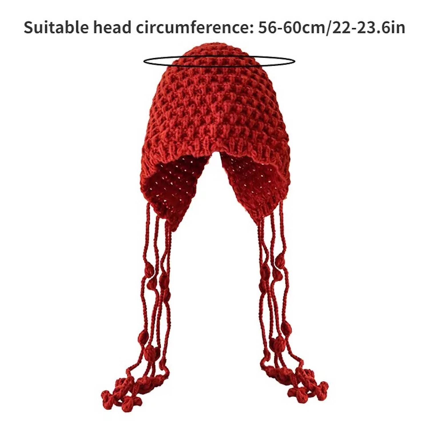 One-size acrylic beanie with cute animal design, tassel braids; ideal for winter outdoor activities and everyday wear.