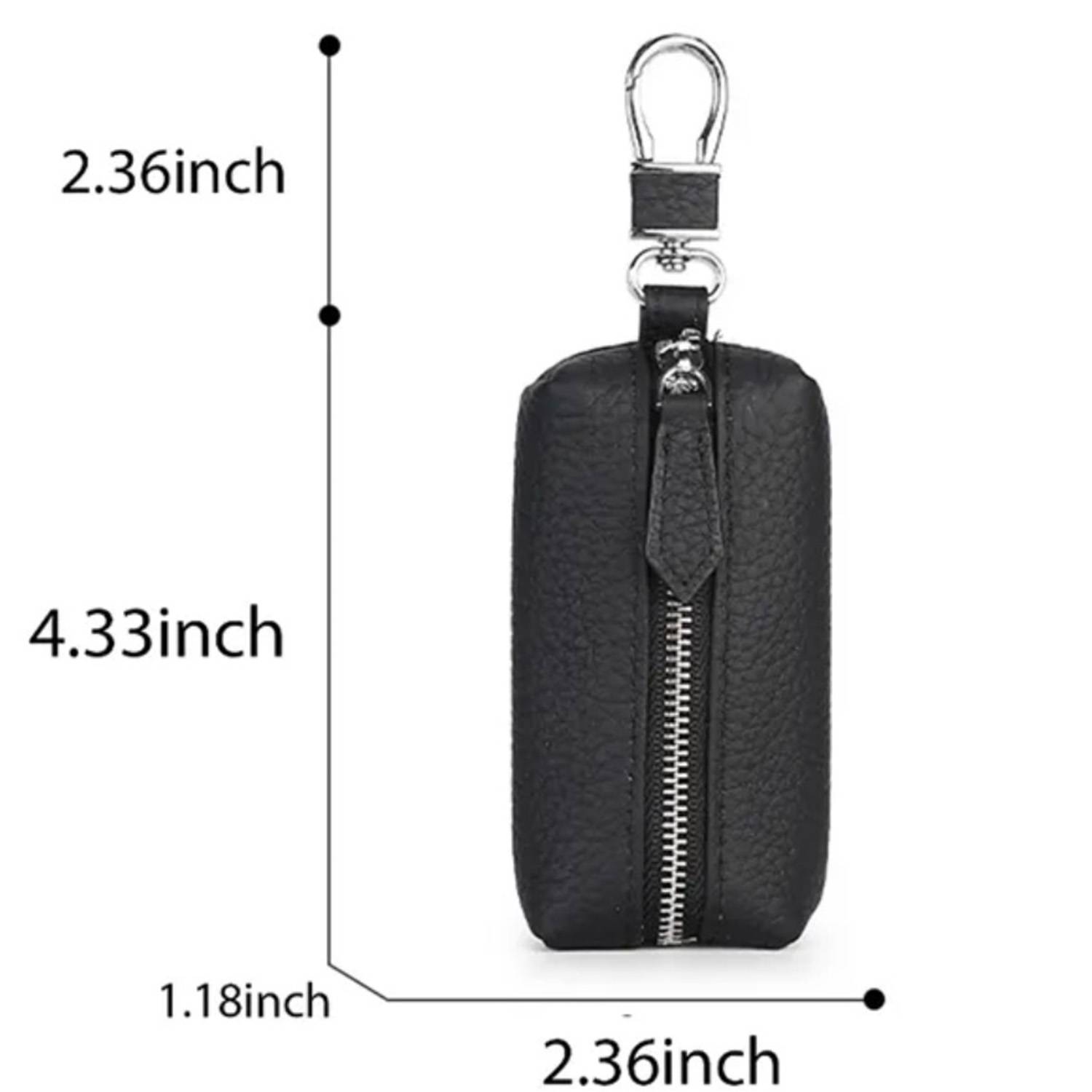 Leather key holder with vibrant colors, zipper closure, clip attachment, and compact, durable design.