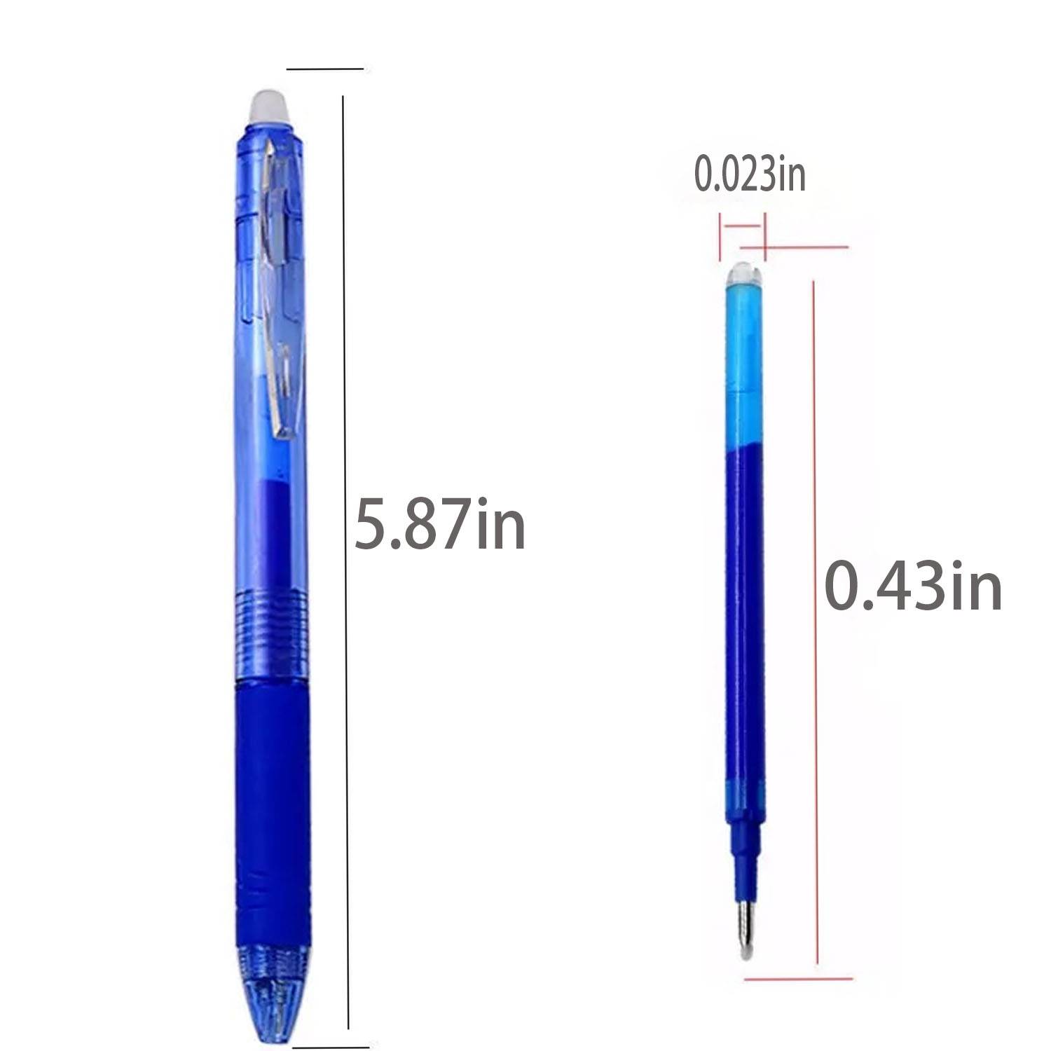 Erasable pen, 0.5mm tip, 6 colors. Smooth gel ink, non-toxic, acid-free. Click design, top eraser, perfect for notes and doodling.