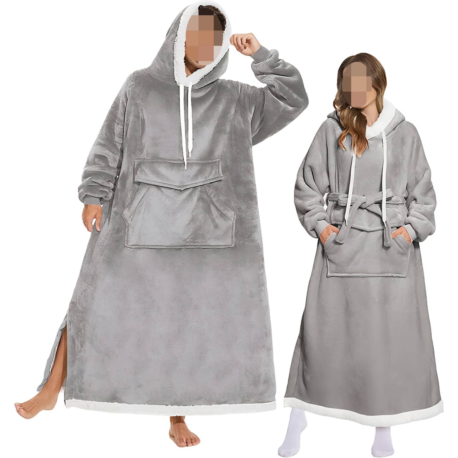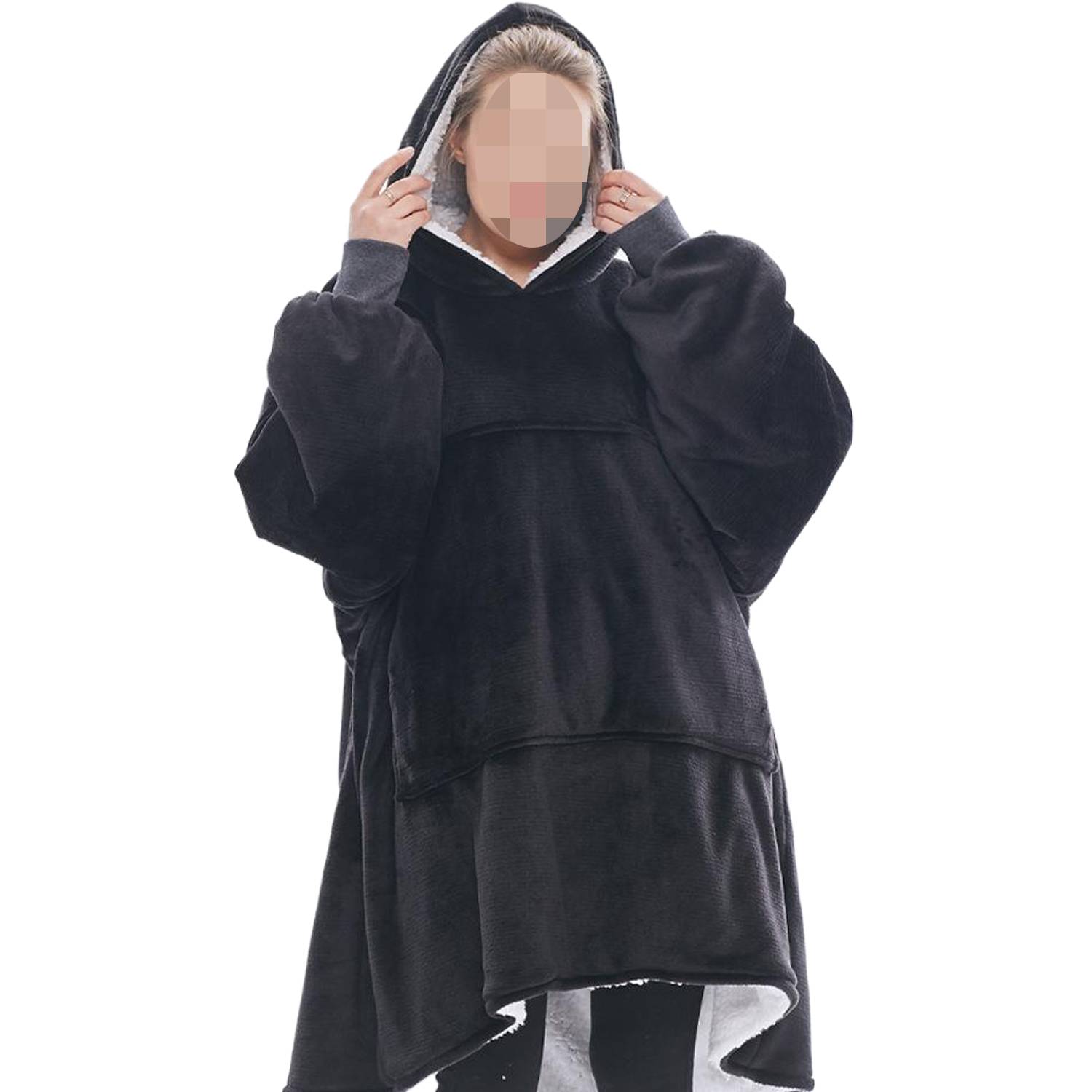 Oversized Long Warm Fleece Blanket Hoodie w/ Drawstring