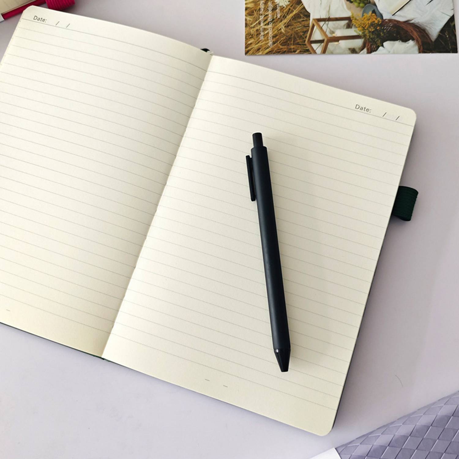 This notebook with magnetic closure has bleed-proof paper, a bookmark, pen slot ideal for work, travel, and daily use.