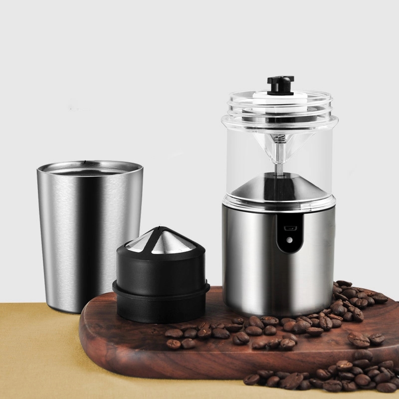 3-in-1 double-walled coffee grinder made of stainless steel.