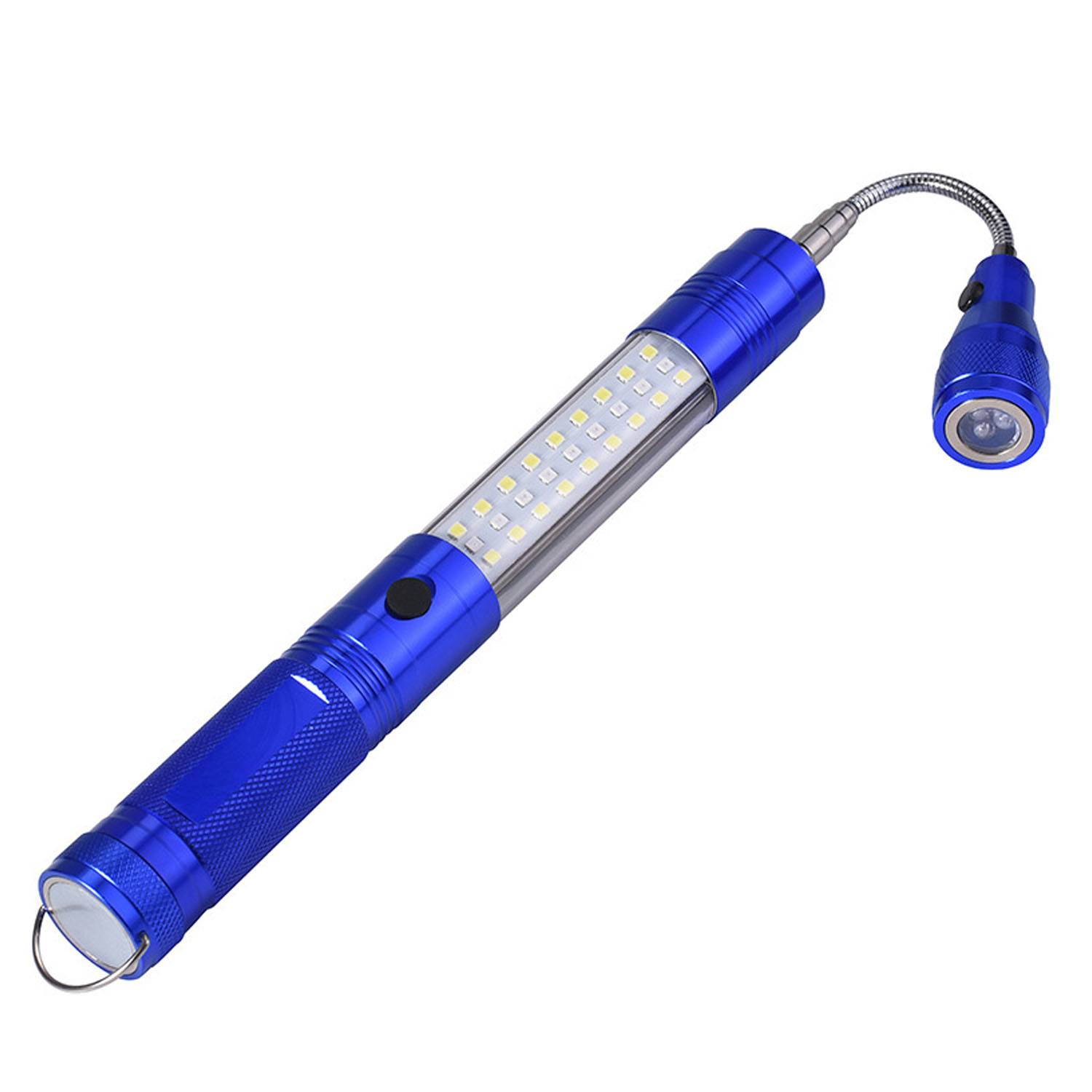 Versatile tool with magnetic work light, 3 modes, and telescopic flashlight. Compact and portable.