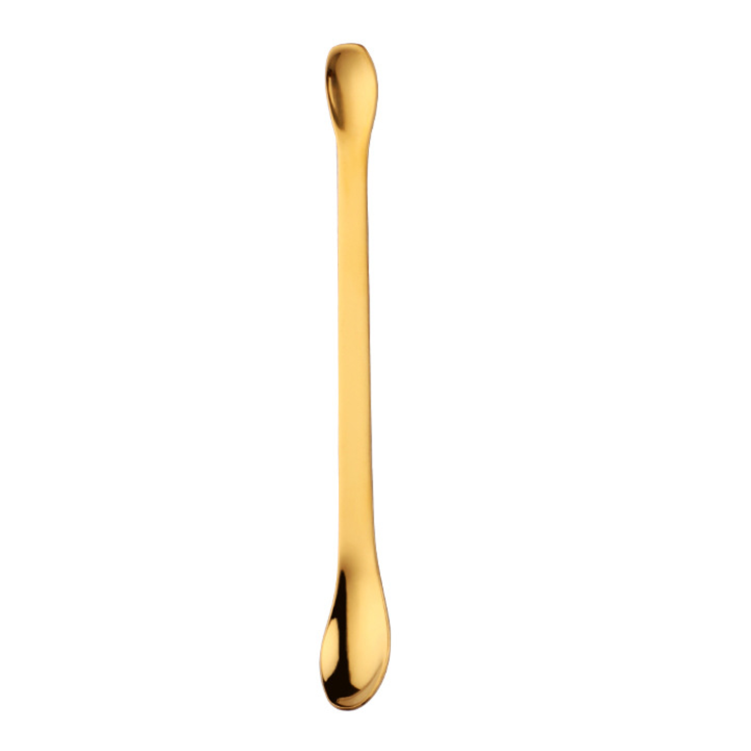 Stainless steel double-ended spoon,safe, stirs/scoops drinks/desserts. Handy for kitchens, cafés, easy to use.