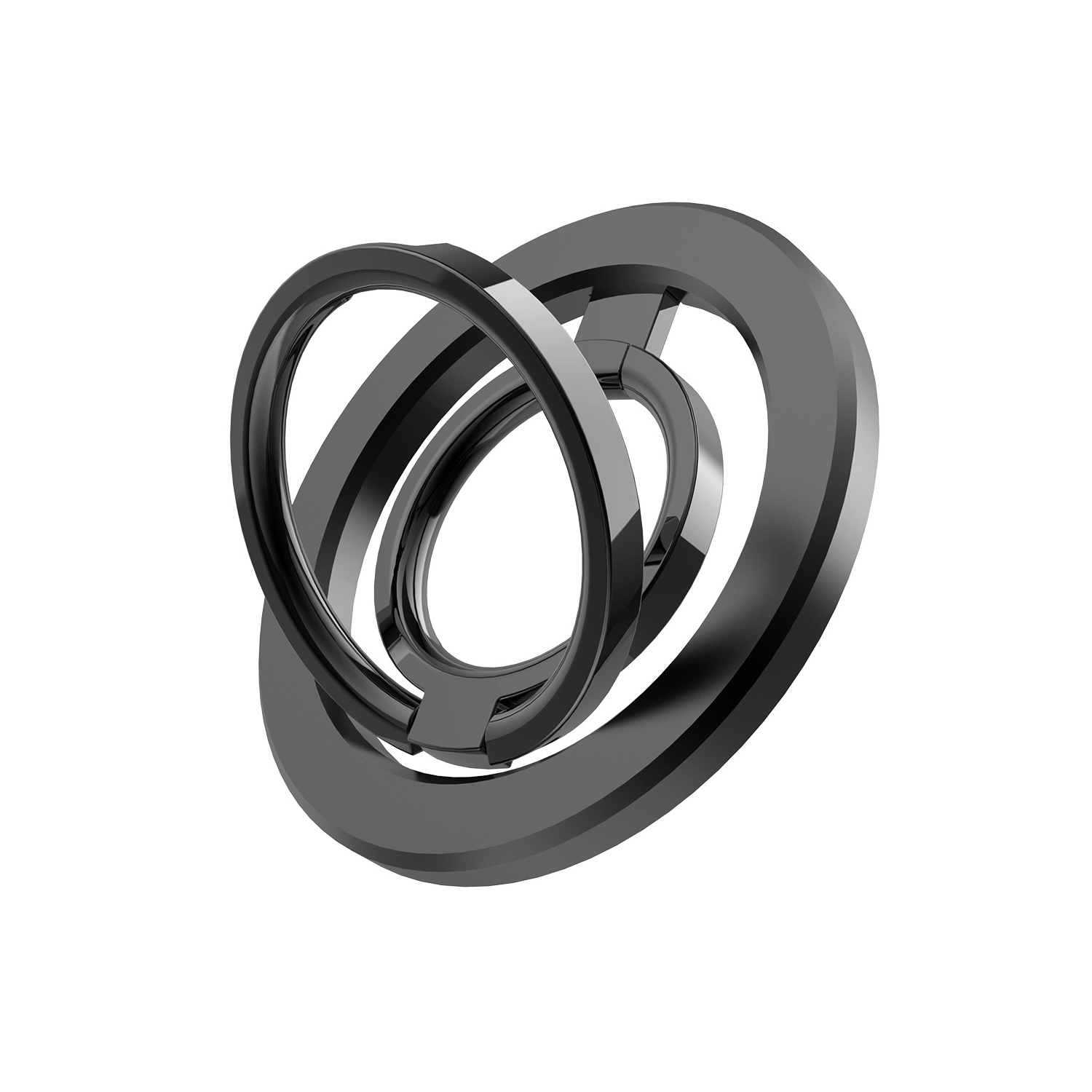 Zinc alloy magnetic phone holder with 180 degrees dual ring folding detachable base for wireless charging.