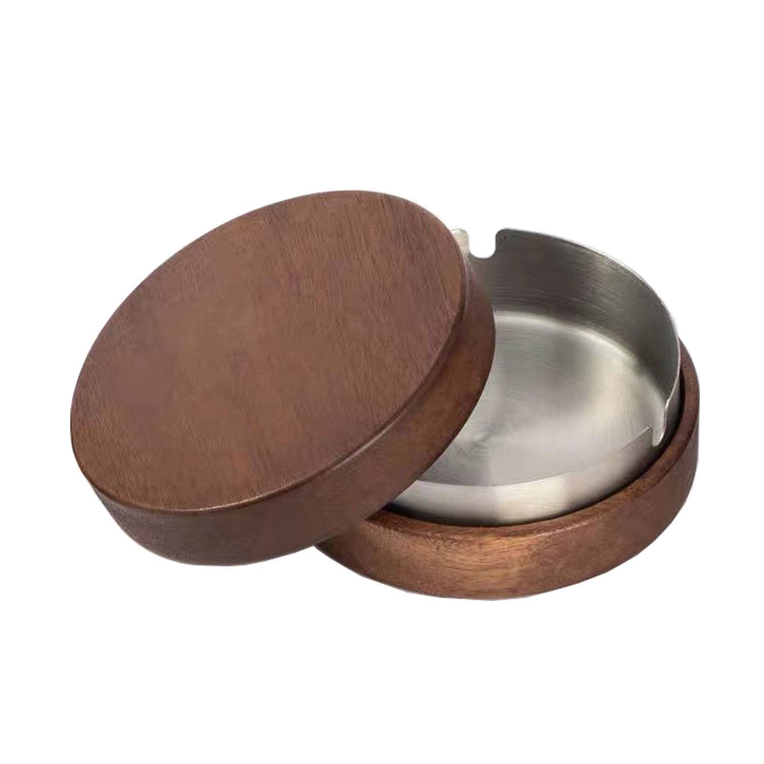 Wooden ashtray with lid and grooves, durable, easy to clean, stylish design, ideal for home, patio, office, and outdoor use.