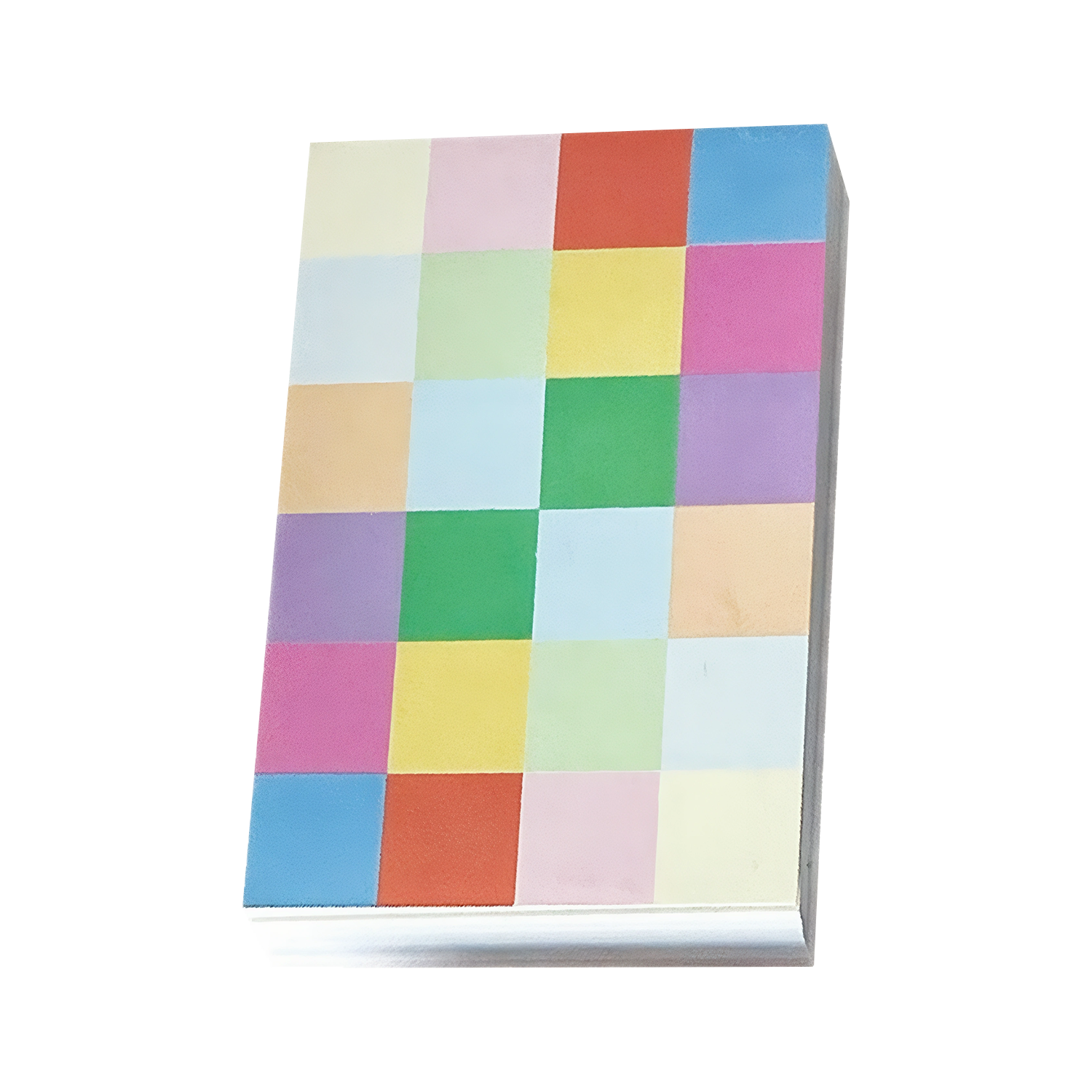 A 120 sheet M5 notepad with secure top glue binding for page removal. Features a white cardstock cover. Perfect for quick notes.