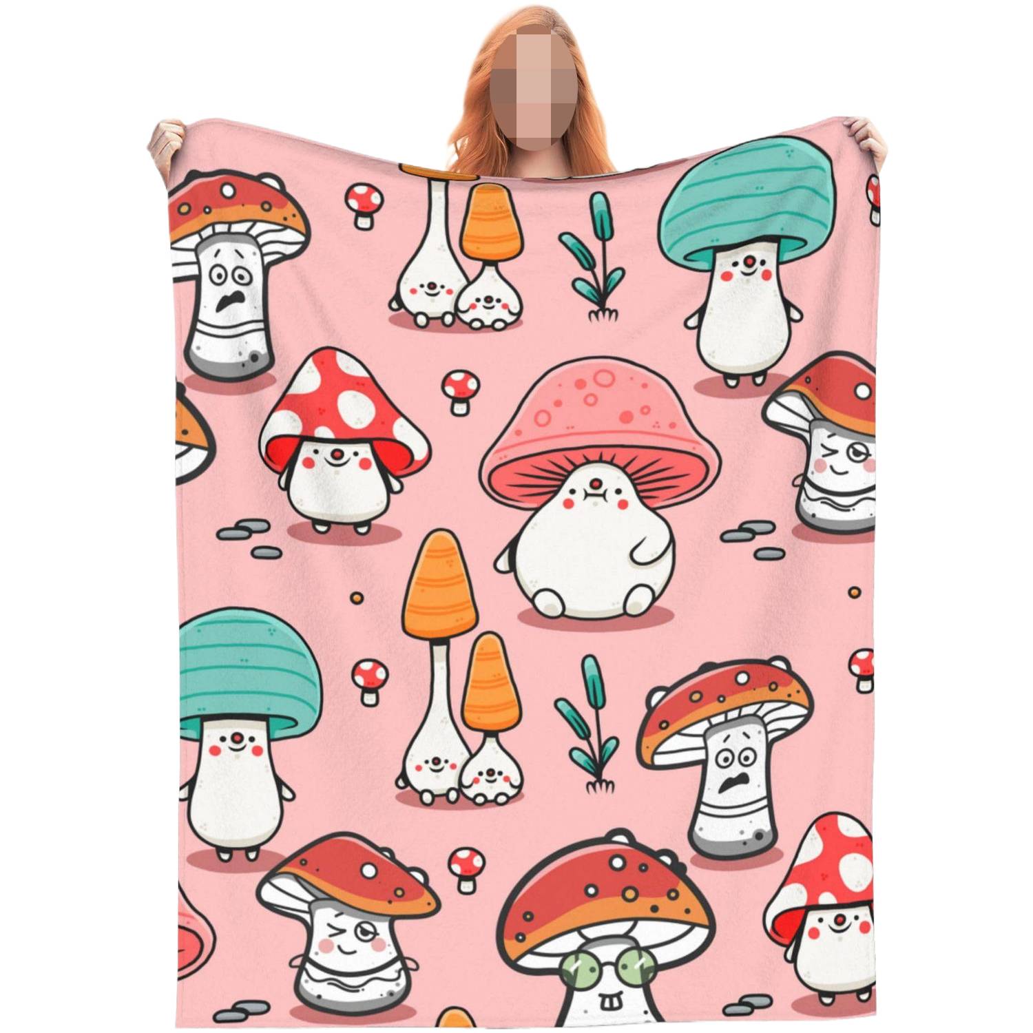 Mushroom print fleece blanket, soft and versatile for couch, bed, and travel use, providing cozy comfort for all.