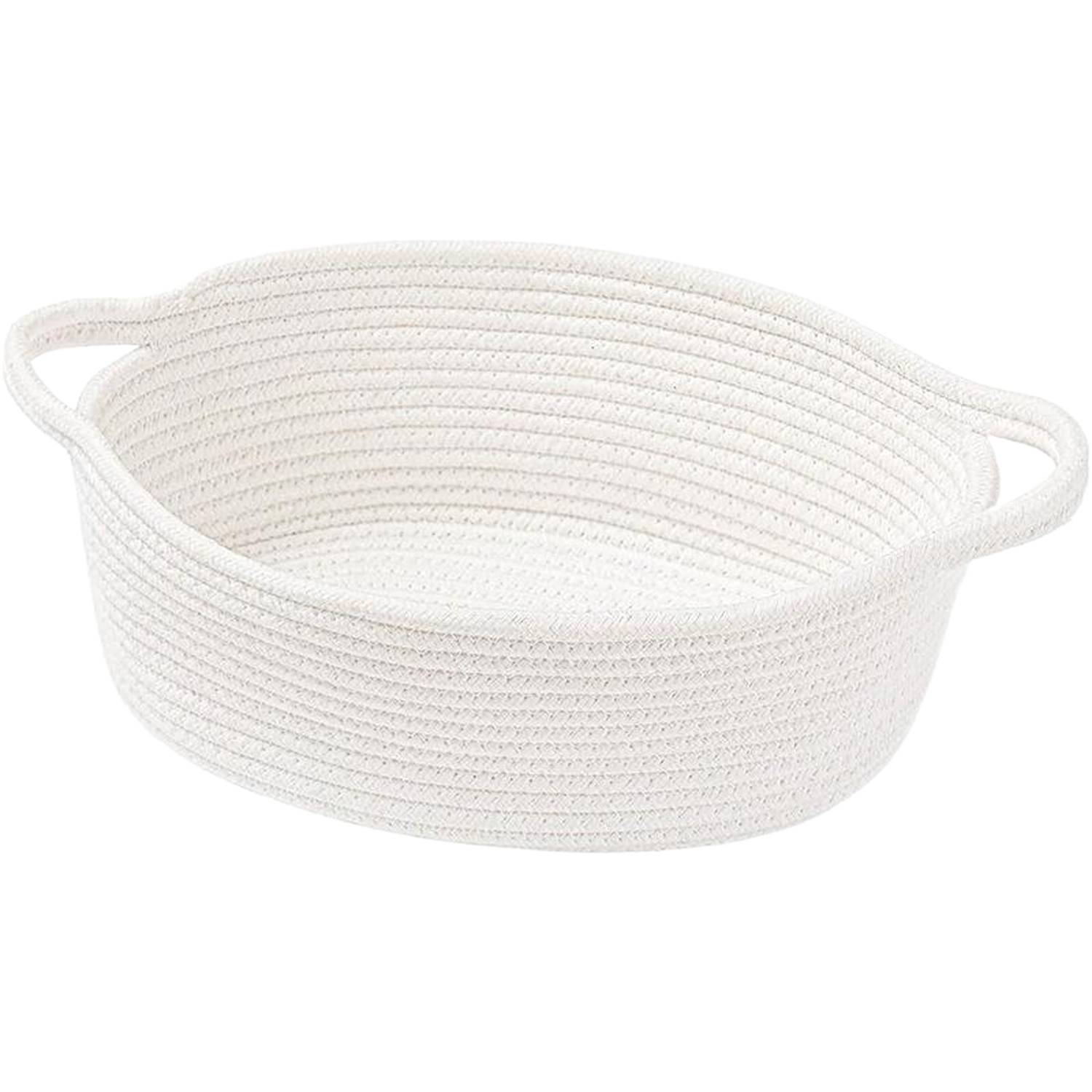 Hand-woven cotton rope storage basket. Natural, durable, and versatile for home organization in various rooms.