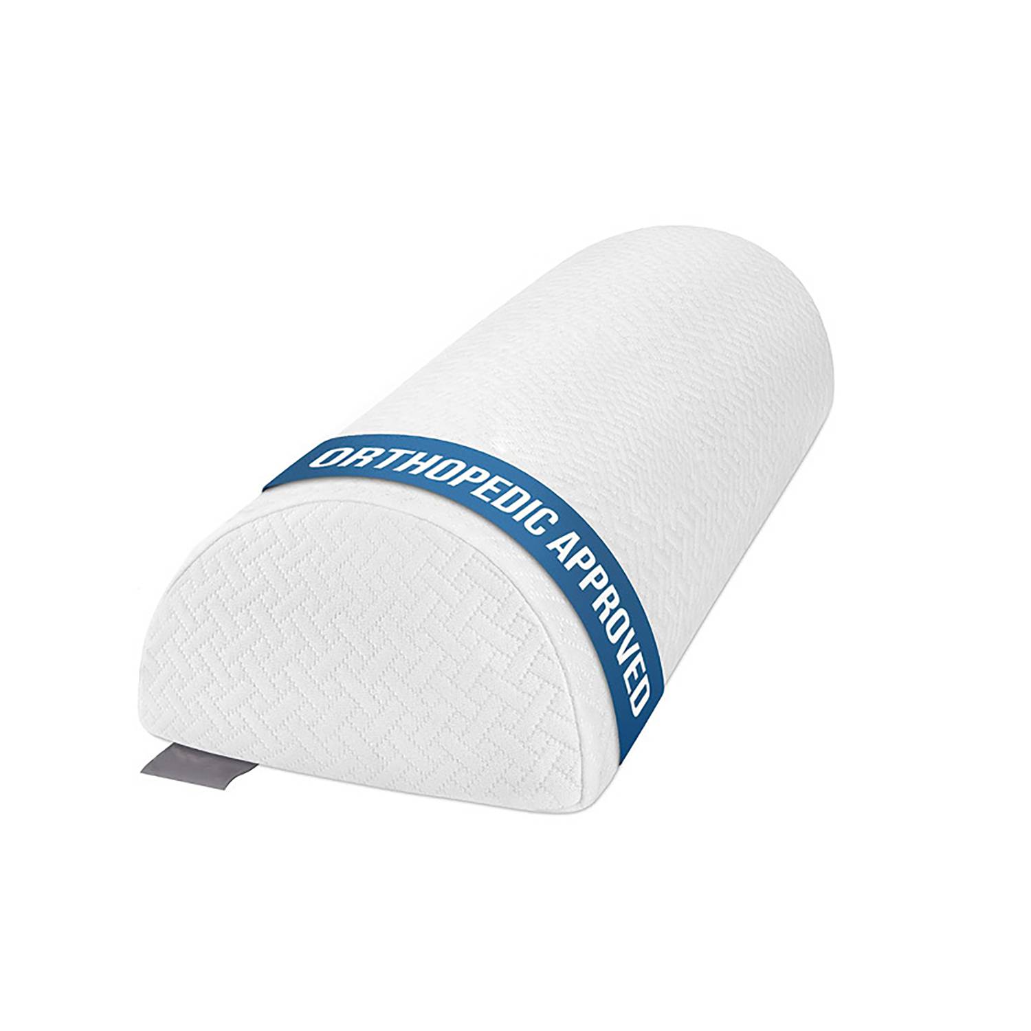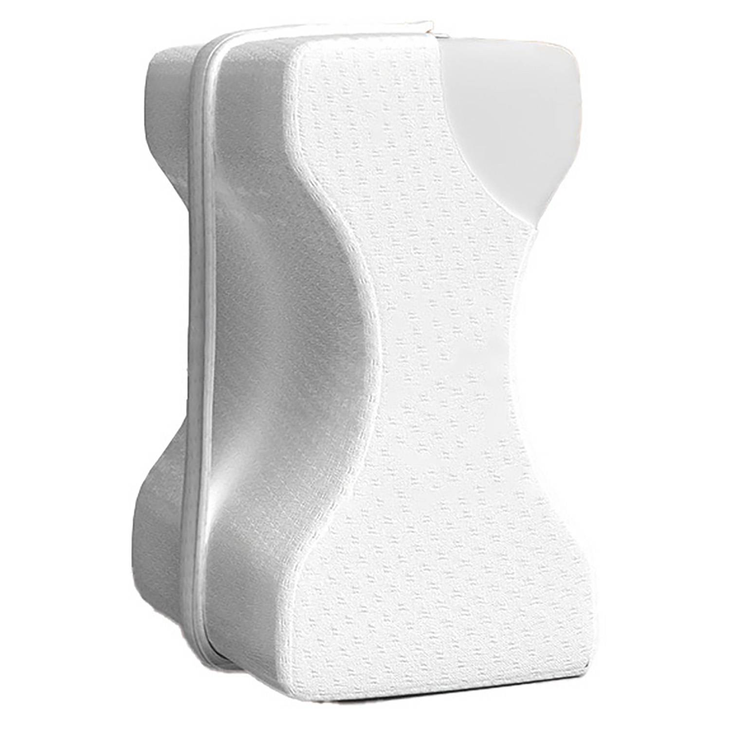 Memory foam knee pillow with adjustable strap for side sleepers;offers support,comfort,and alignment for restful sleep.