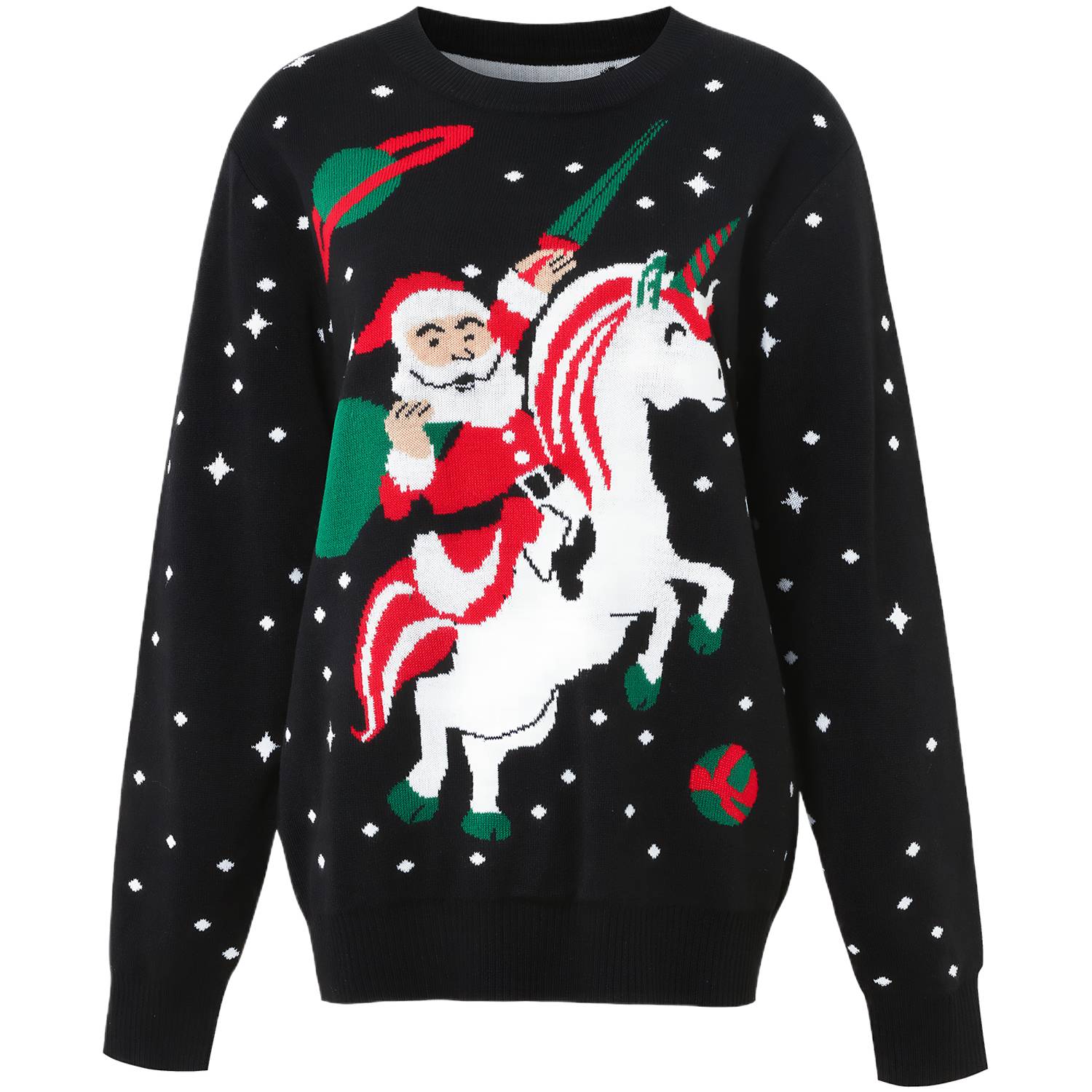 Santa Claus Christmas sweater in soft acrylic, perfect for festive parties, family photos, and holiday celebrations.