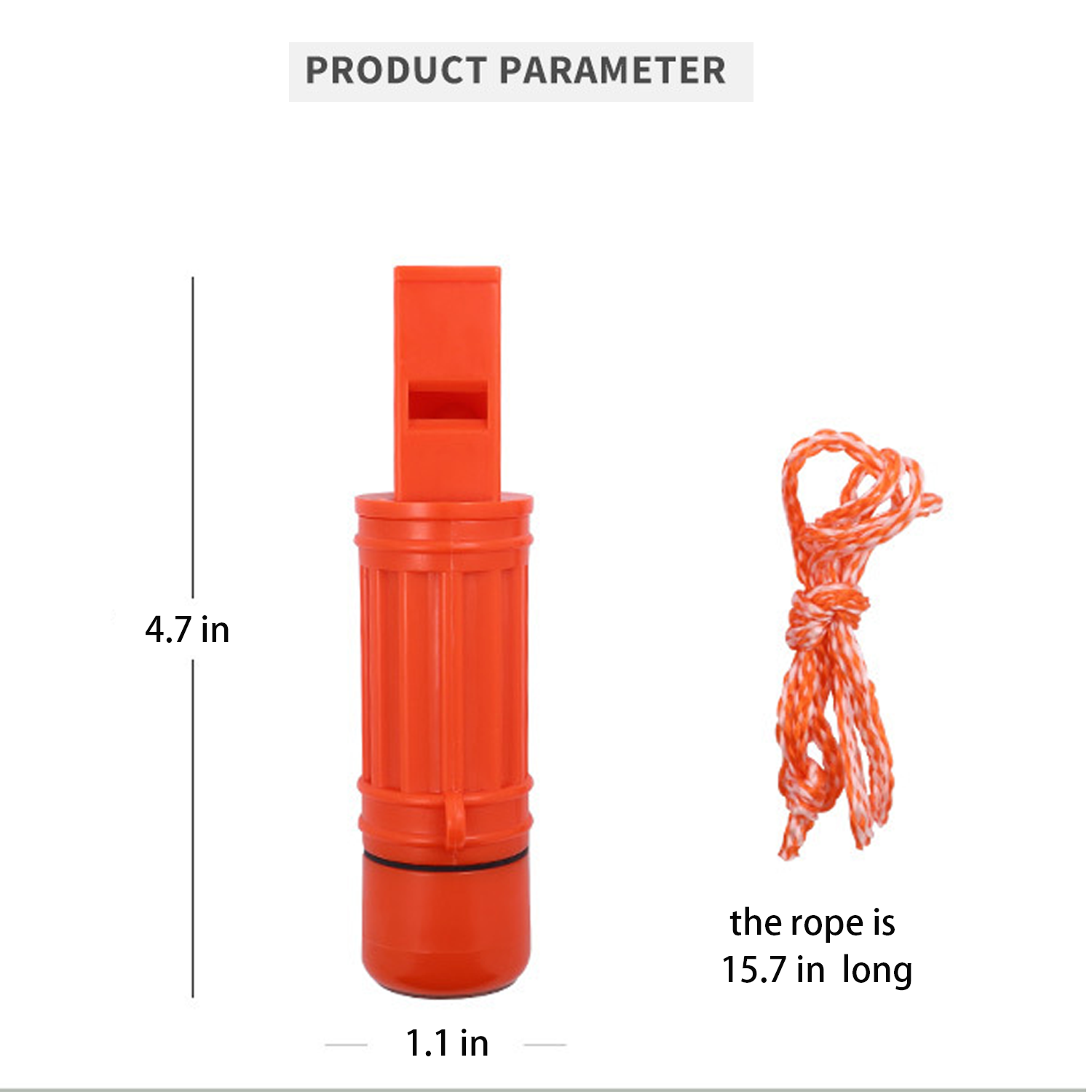 The 5-in-1 Survival Whistle: safety whistle, compass, signaling mirror, water-resistant container, fire flint.