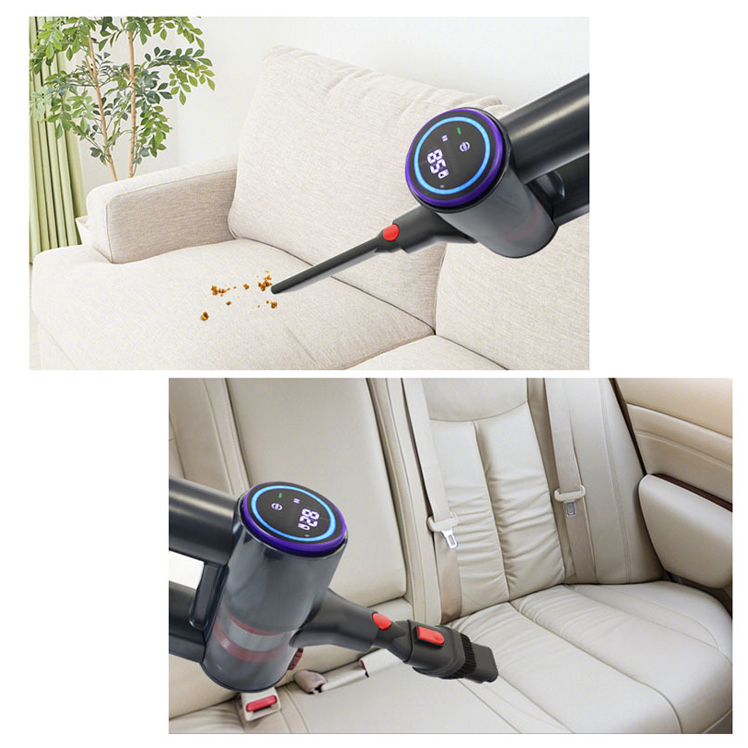 Cordless vacuum cleaner with 350W motor provides 26kpa suction, removing dirt & hair. LED display shows suction & battery.