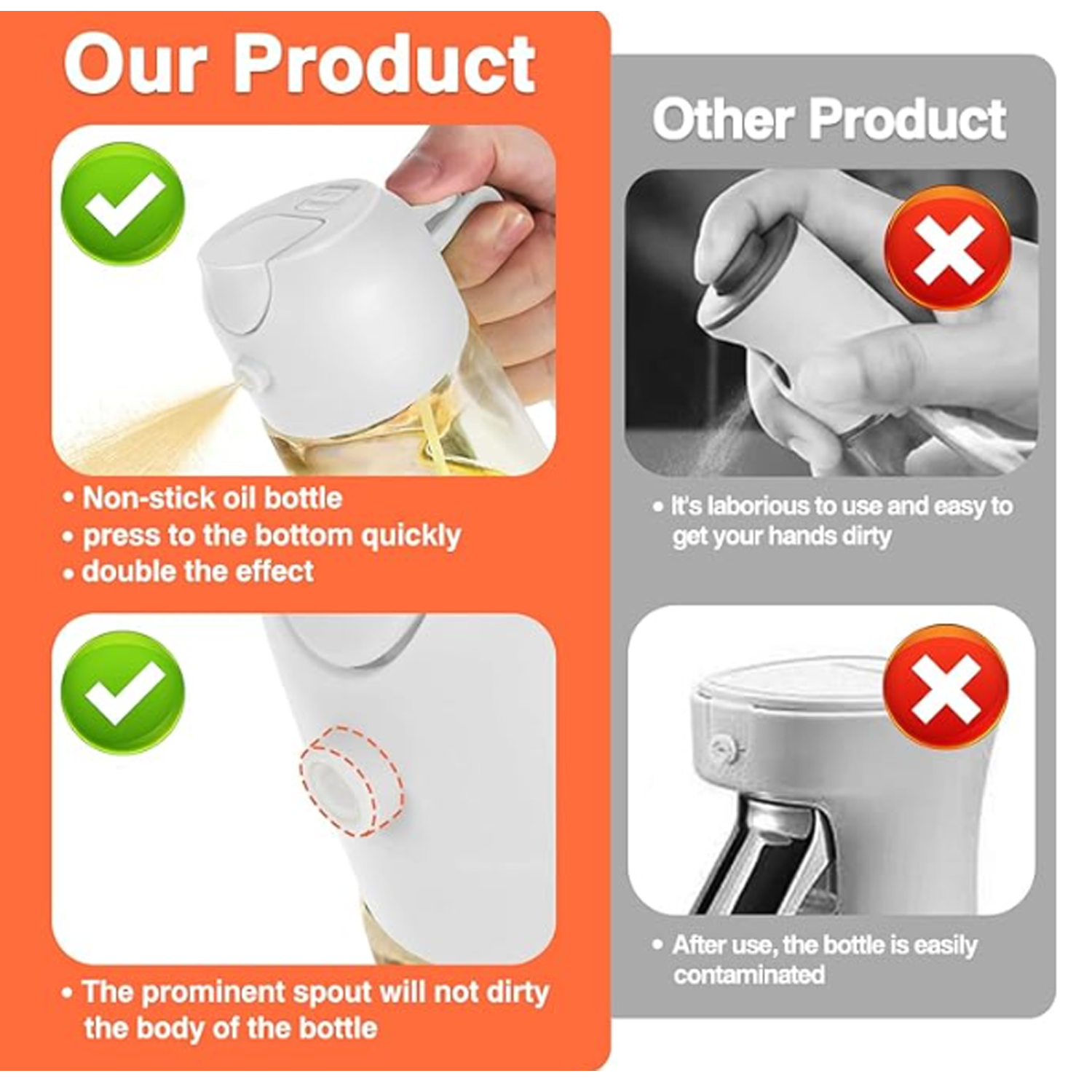 Oil nozzles, unused, pump for best. Quality guaranteed, lifetime support. Oil bottles pour & spray, saving space.