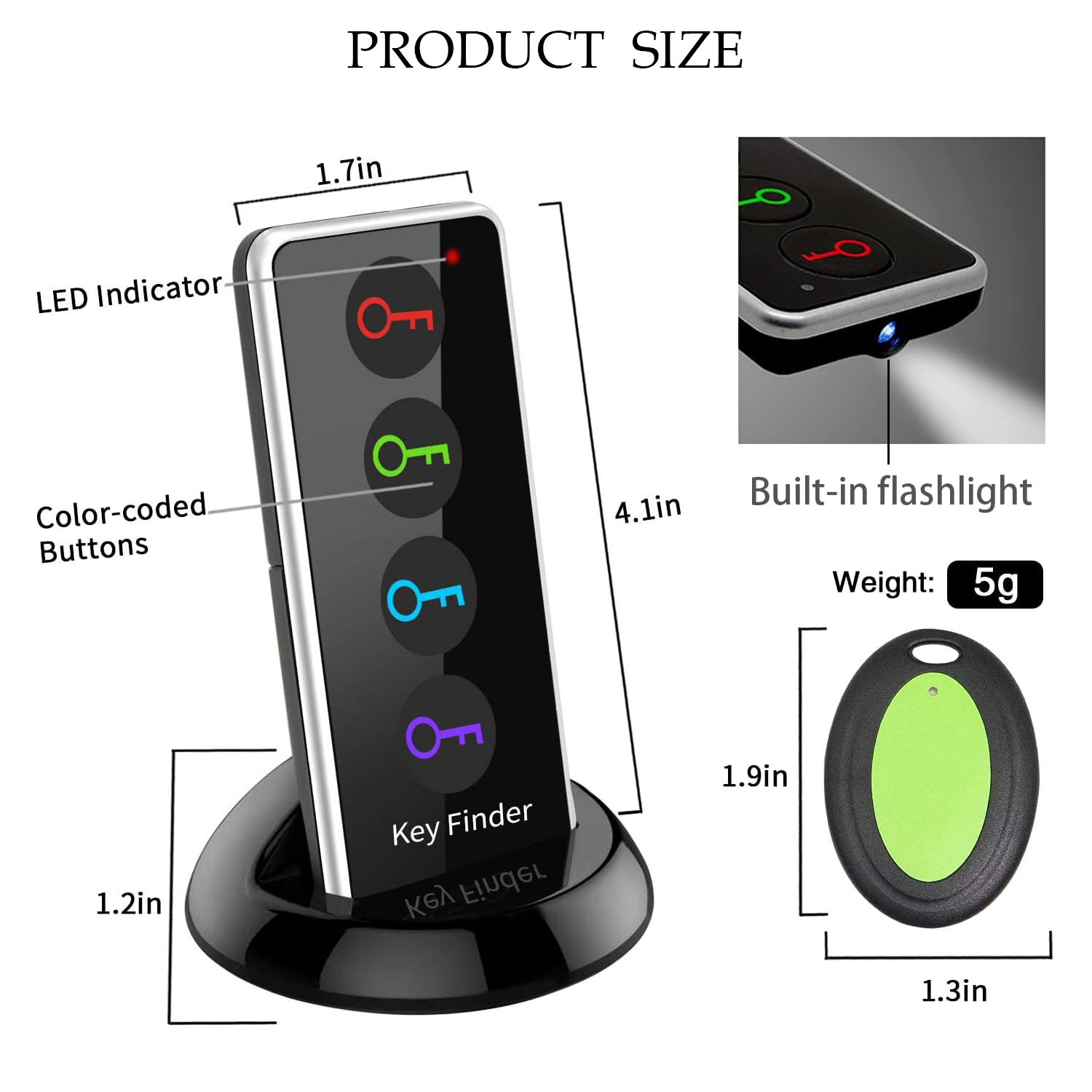 Lose keys, remotes? Megtaight key finder with 4 receivers, easy attach. 80db beep & LED light, 131ft tracking.