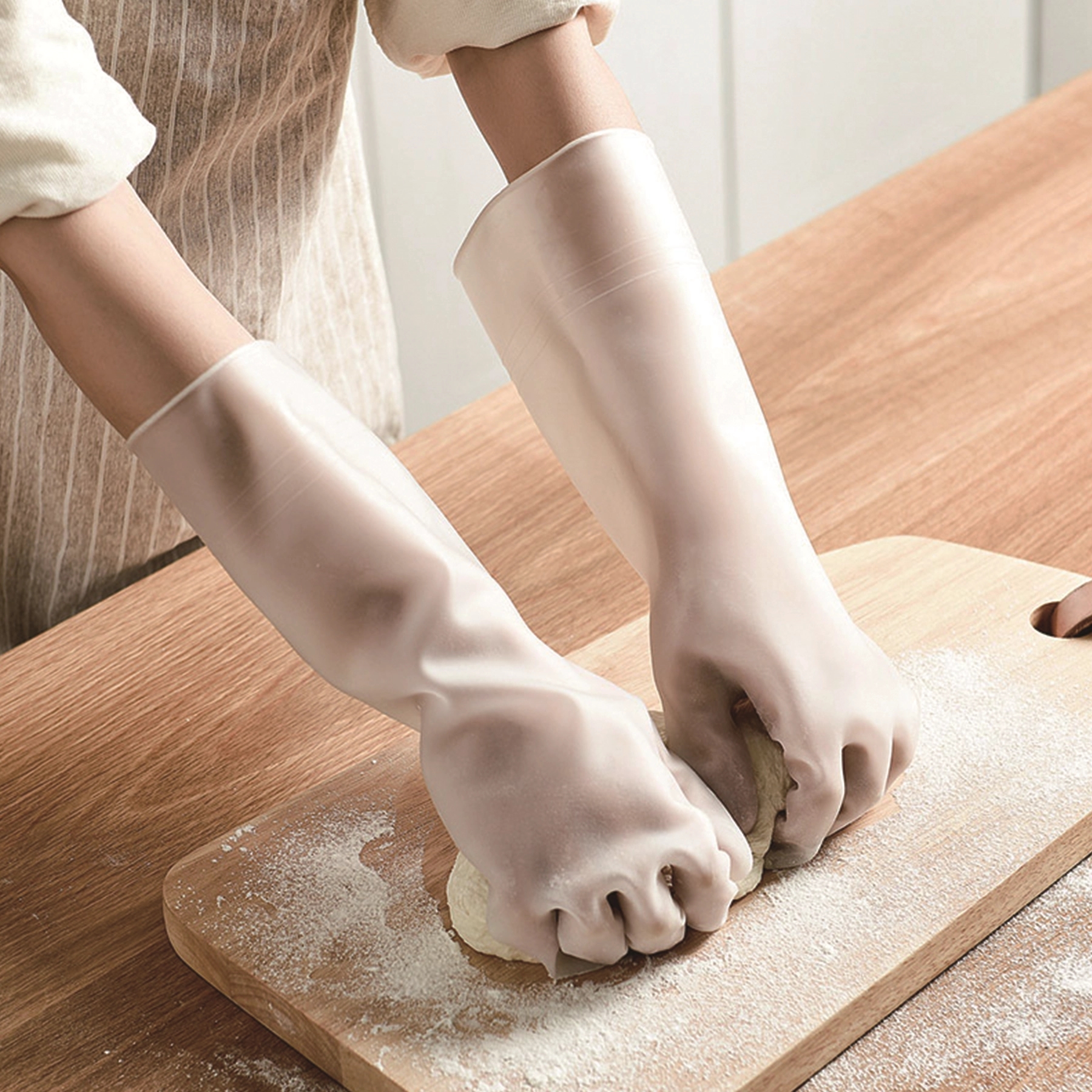 It is a kitchen waterproof housework glove widely used in home dishwashing, baking and so on.