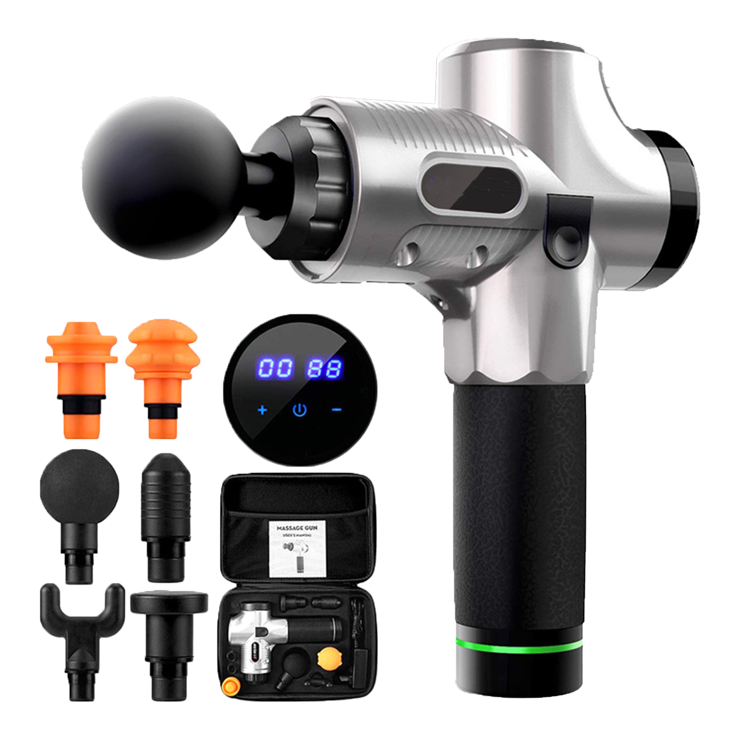 6 interchangeable massage heads and 30 adjustable speed levels work to meet the needs of different muscle groups.