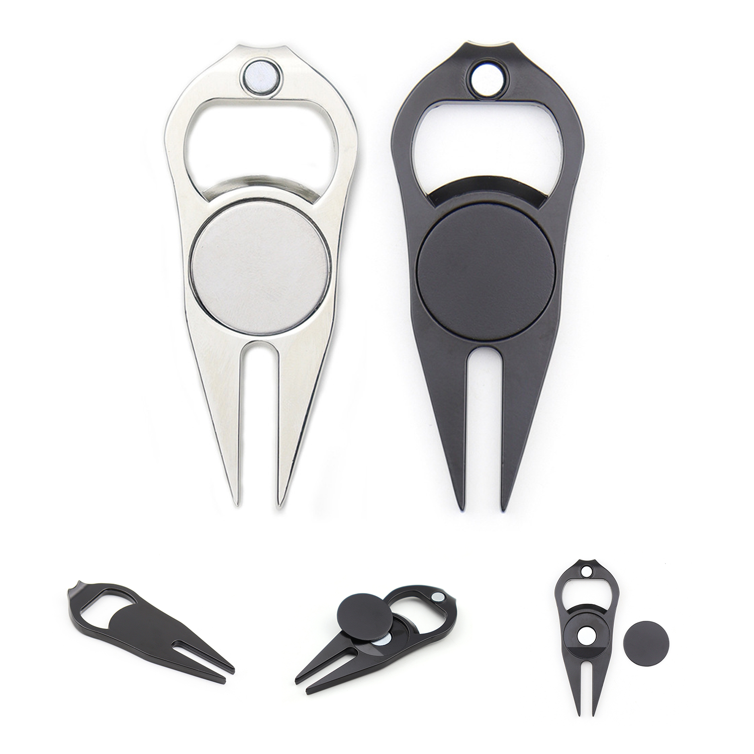 This golf divot repair tool is made of quality metal, measures 3.4 x 1.4 inches, can also used as a bottler opener.