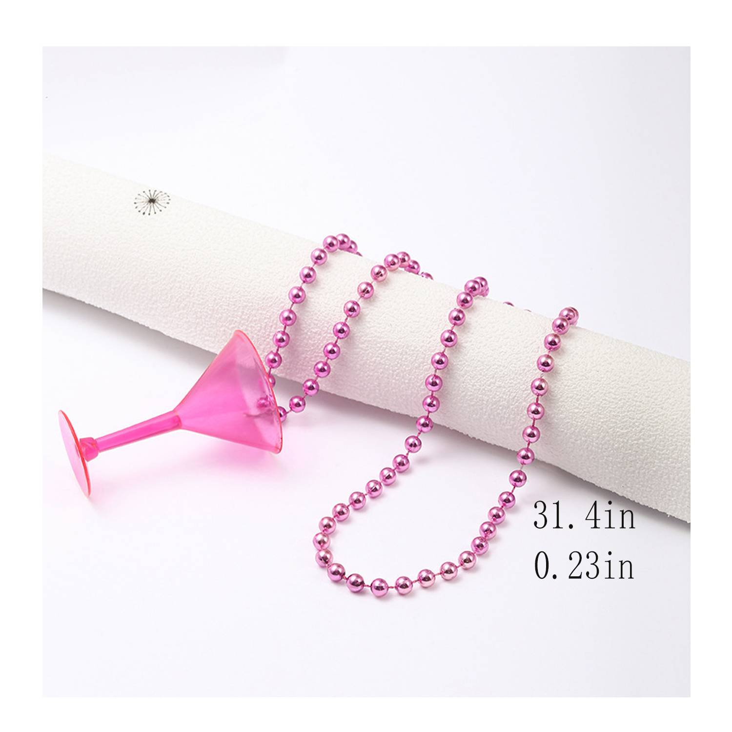 Fashion Plastic Goblet Shot Glass with Bead Necklace (33.0×2.0 in), perfect for parties, durable and reusable.