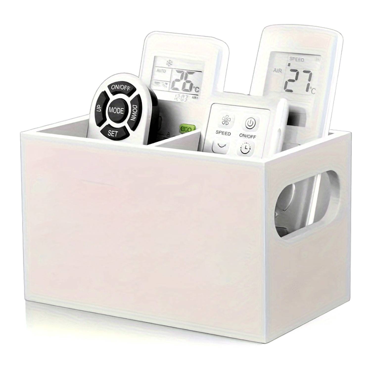 Solid wood remote holder with 2 slots, easy access, multi-use, space-saving design, perfect for home or office use.
