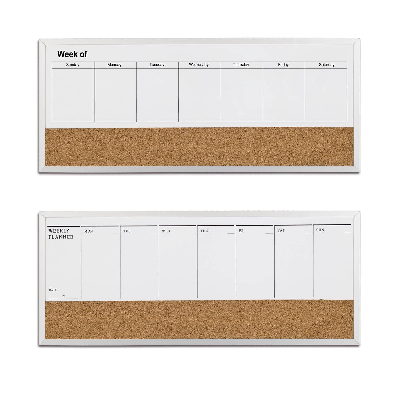 Aluminum-framed cork board with weekly calendar: durable, easy to pin, boosts productivity for offices, homes, classrooms.