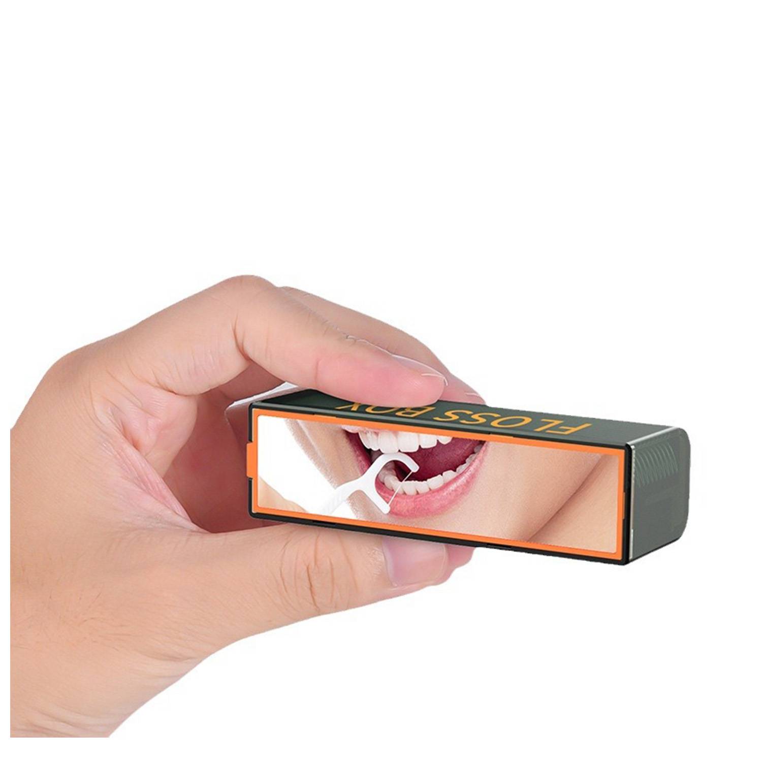 Mirror-shell box: stylish, auto-pop floss. Holds 10, perfect daily. Compact, ideal for travel.