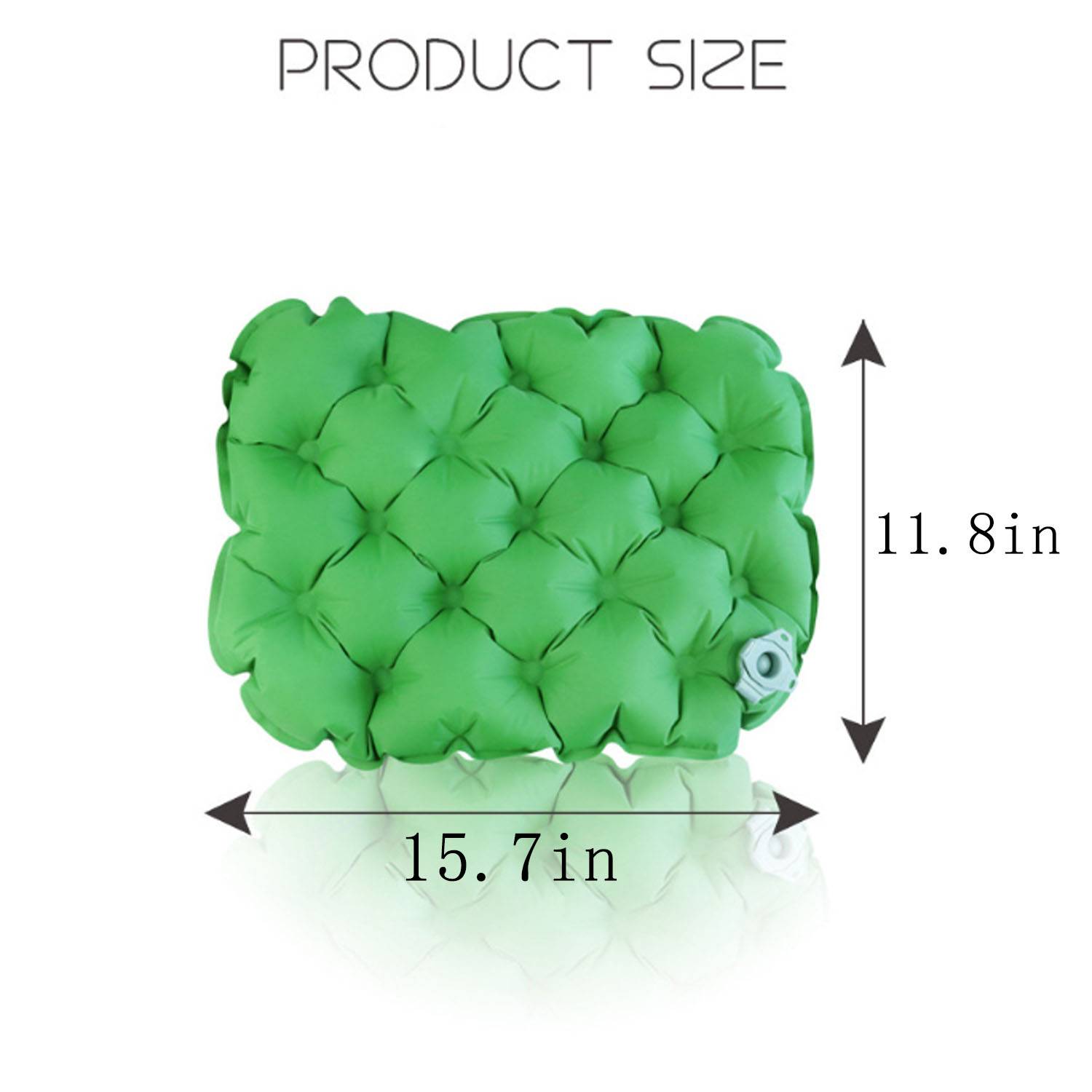 Portable outdoor inflatable cushion (15.7 x 11.8 in) for camping, picnics, and outdoor comfort.