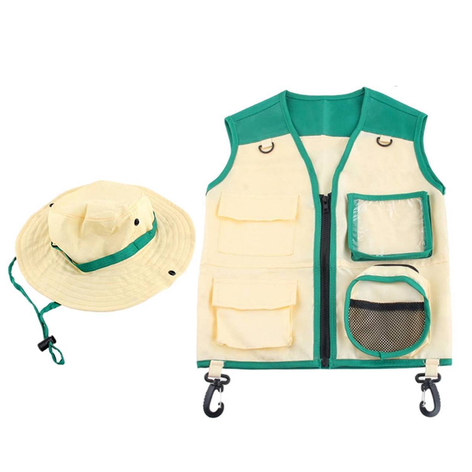Lightweight polyester vest and hat set for kids; safe, comfy, and ideal for outdoor play, camping, or nature adventures.