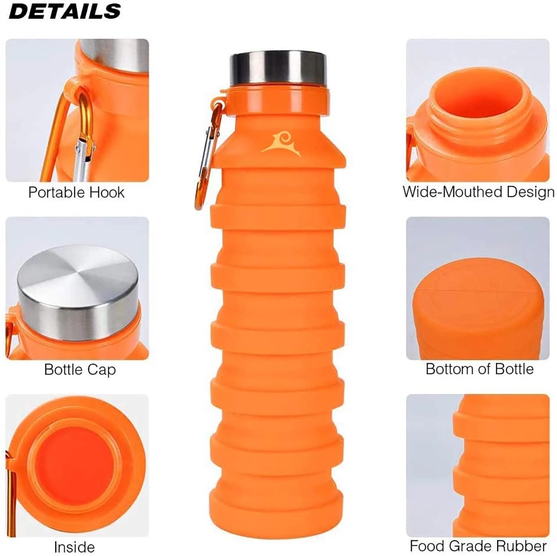 18oz Collapsible Silicone Water Bottles with Carabiner