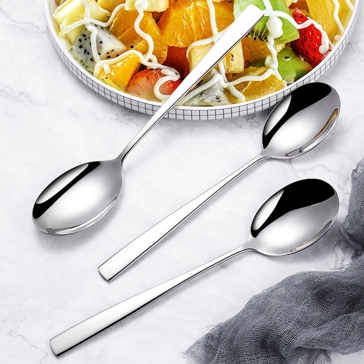 It is mirror polishing and fine grinding; Enlarge and deepen the design of spoon head; Fine polishing. Widely used in restaurants.