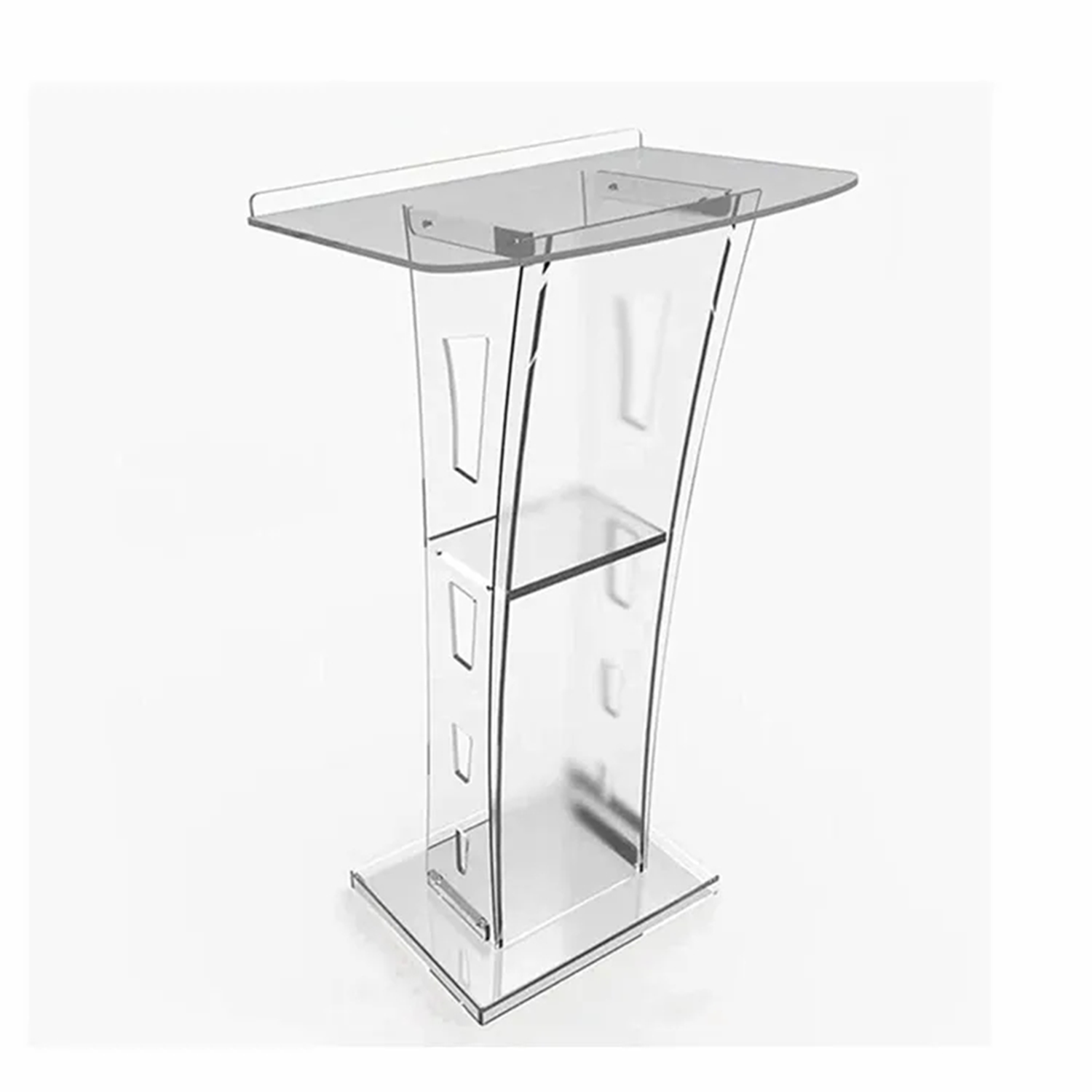 Lightweight acrylic podium, eco-friendly, stable, with storage.