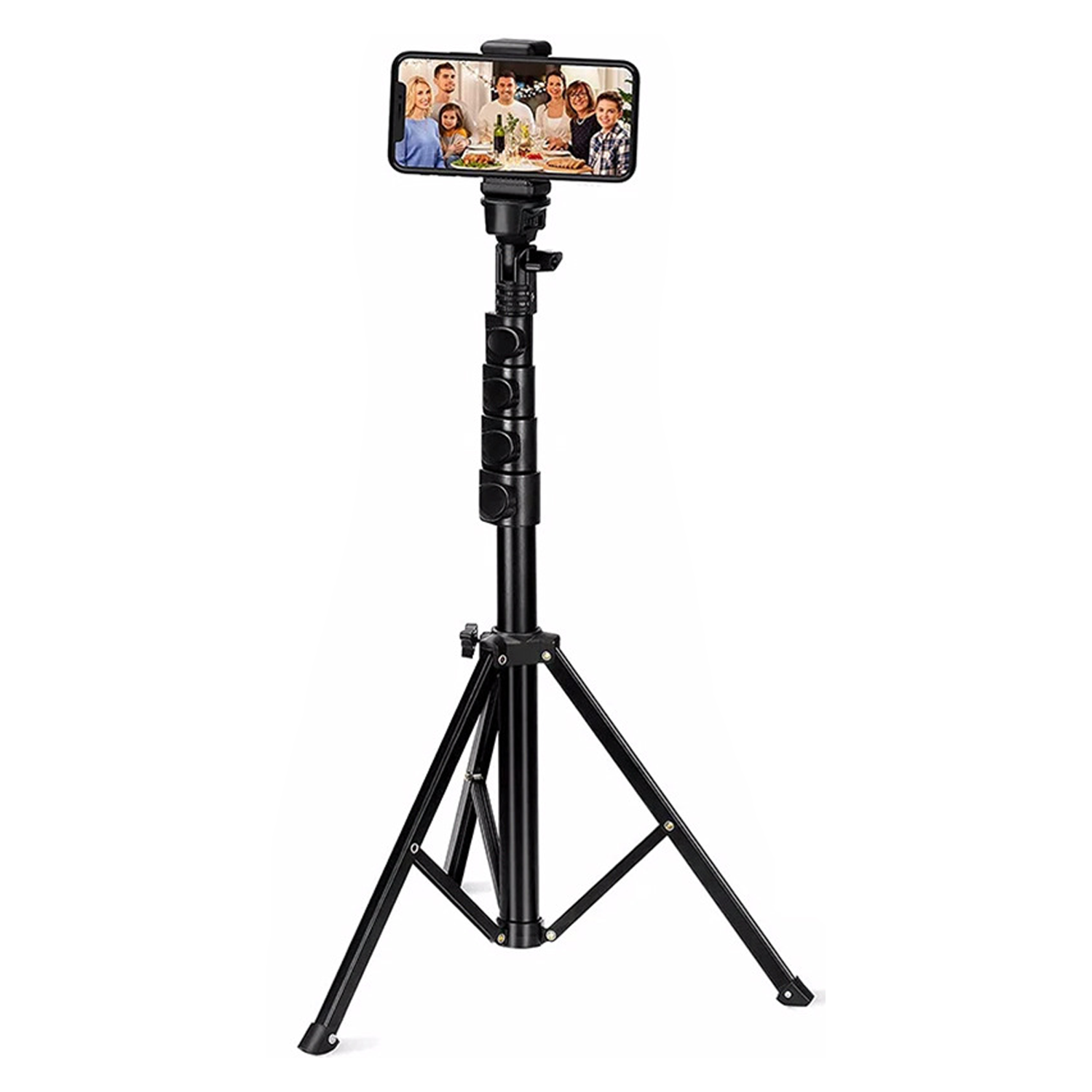 Aluminum telescoping phone camera holder extends 1.6m includes remote clamp adapter for photography vlogging travel.