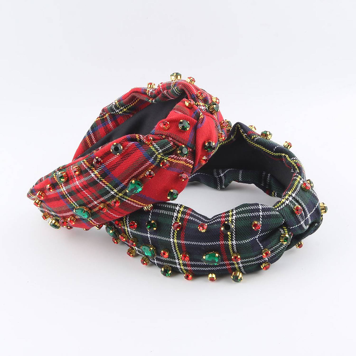 Festive Christmas headbands for women with plaid, pearls, and rhinestones. Elegant, comfortable, and perfect for holiday outfits.
