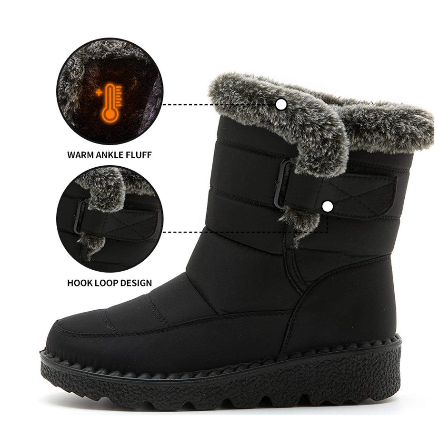 Women’s thick-soled winter snow boots, insulated, warm, slip-resistant, for cold weather comfort.