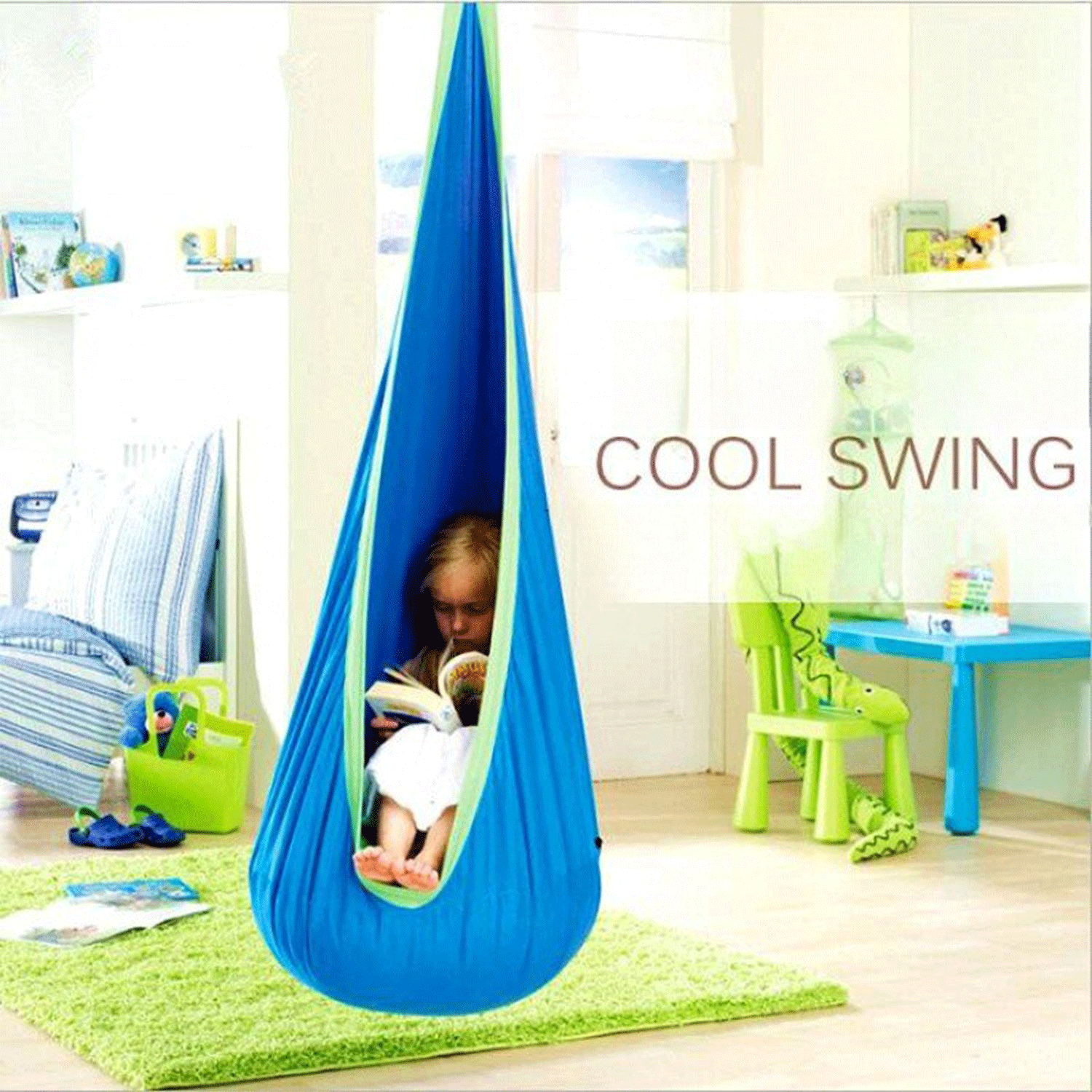 Child outdoor swing hanging hammock chair designed for both indoor and outdoor use, enhance your child’s backyard fun.